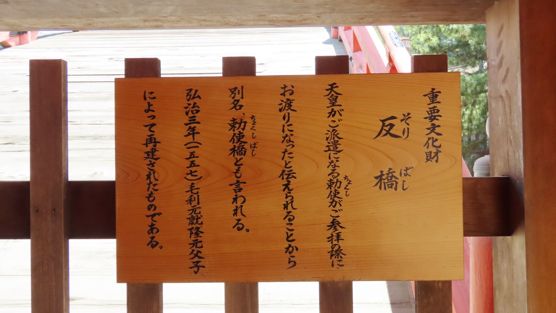 | 重要文化財 説明板 天皇の勅使が参拝の際に渡ることから別名「勅使橋」 2025.5 |