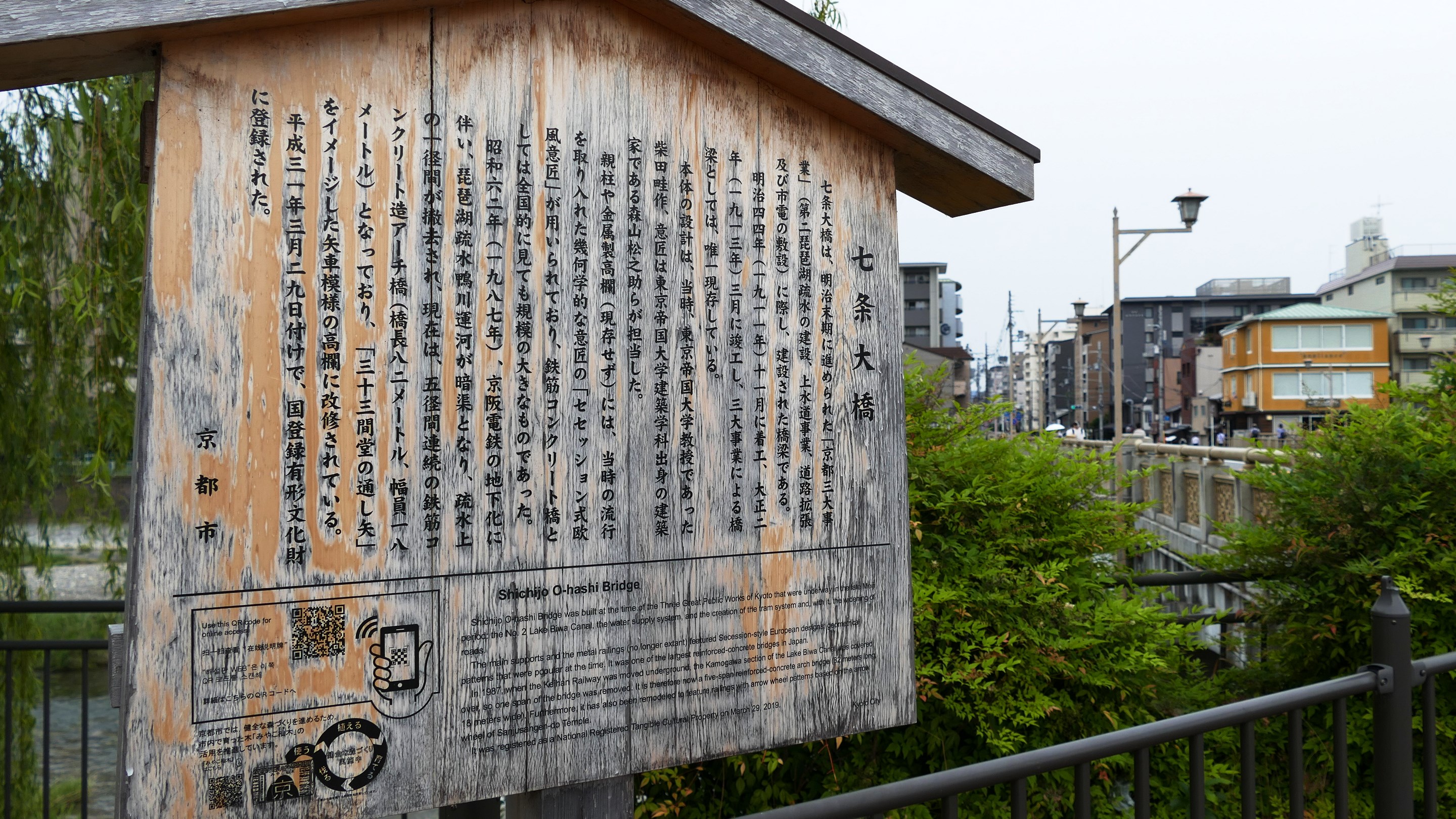 | 東映太秦映画村 撮影用の「日本橋」 2022.6 | 保津峡駅への県道50号に架かるコンクリ造アーチ橋。心霊スポットとして有名。2022.10 | 鴨川に架かる最古の橋 国登録有形文化財 案内板 2024.6 | |||||