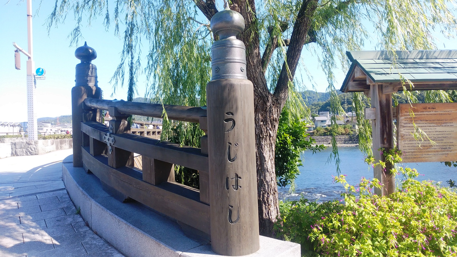 | 京の都と東国を結ぶ交通の要として「唐橋を制するものは天下を制する」とまでいわれていた。 唐金擬宝珠(からがねぎぼし)の欄干をもつ美しい橋。 案内板 2018.4.19 |