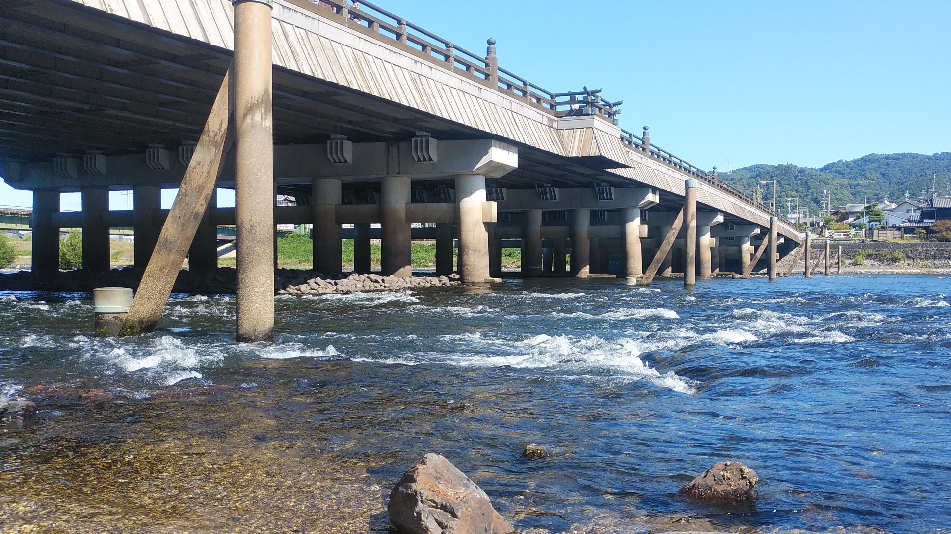 | 蓬莱橋(ほうらいばし) 静岡県島田市 世界一長い木造歩道橋。橋の長さは897.4m | |||||||
