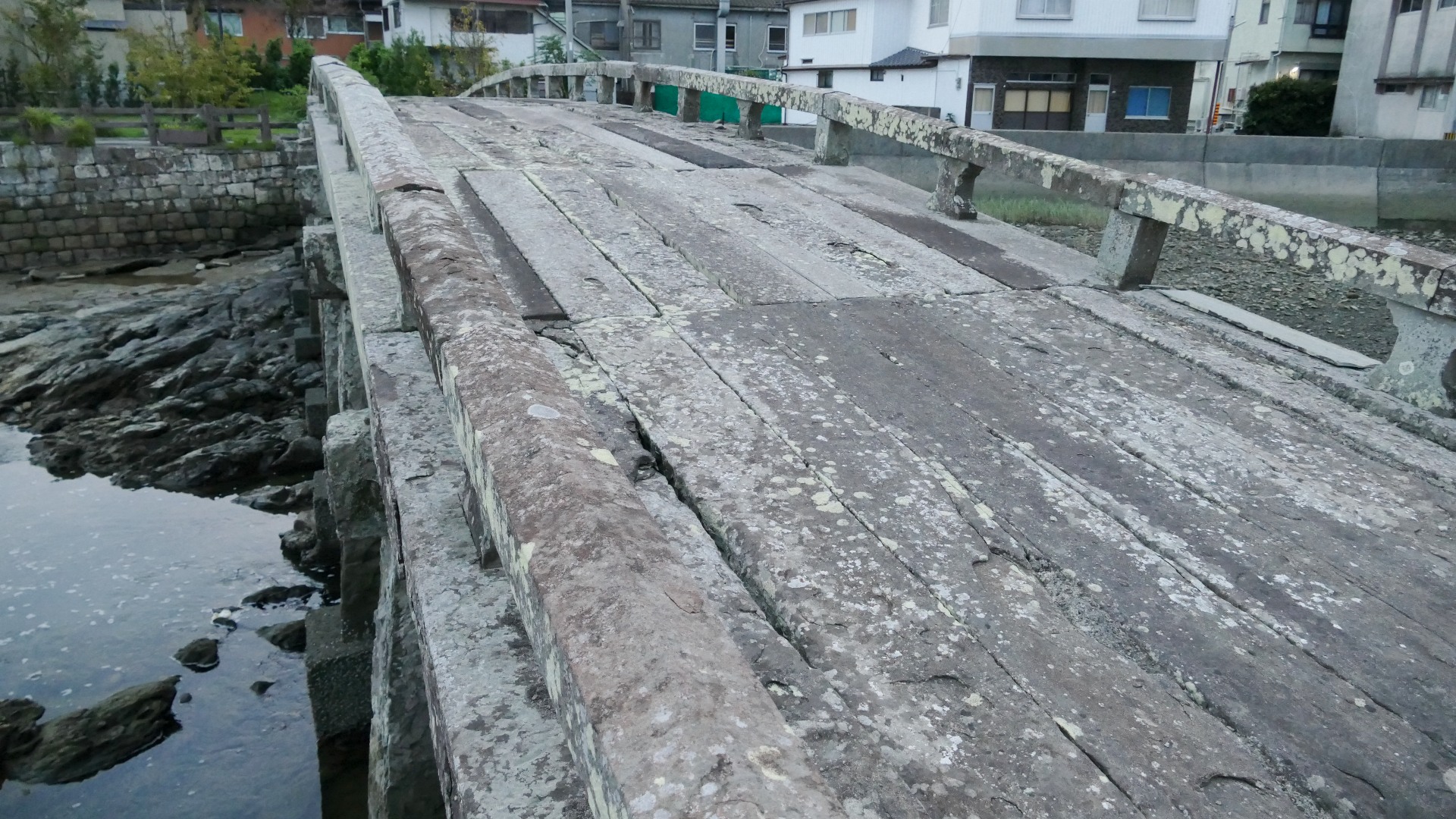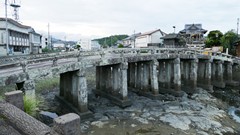 | 天保3(1832)年に架設された石造桁橋では日本最大級で、 45脚の石柱で支えられている。 案内板 2024.10 |