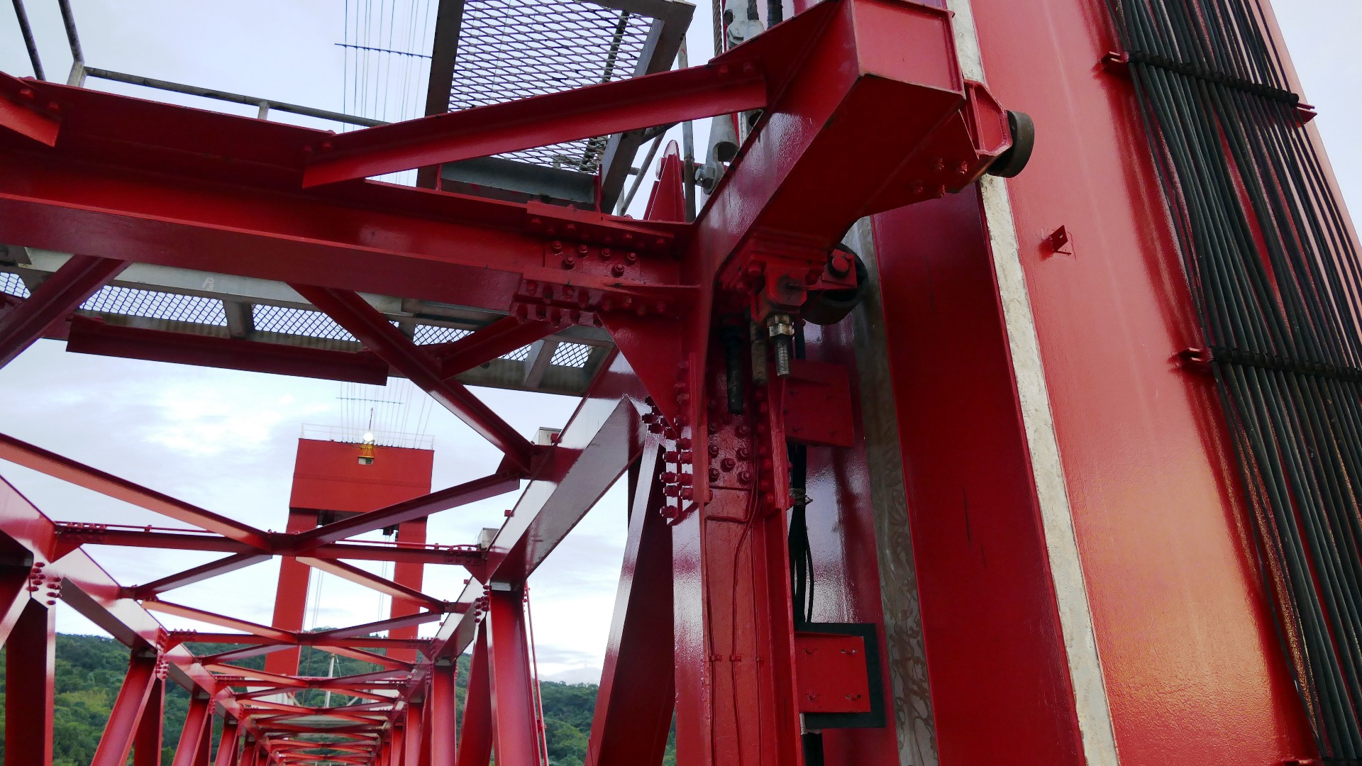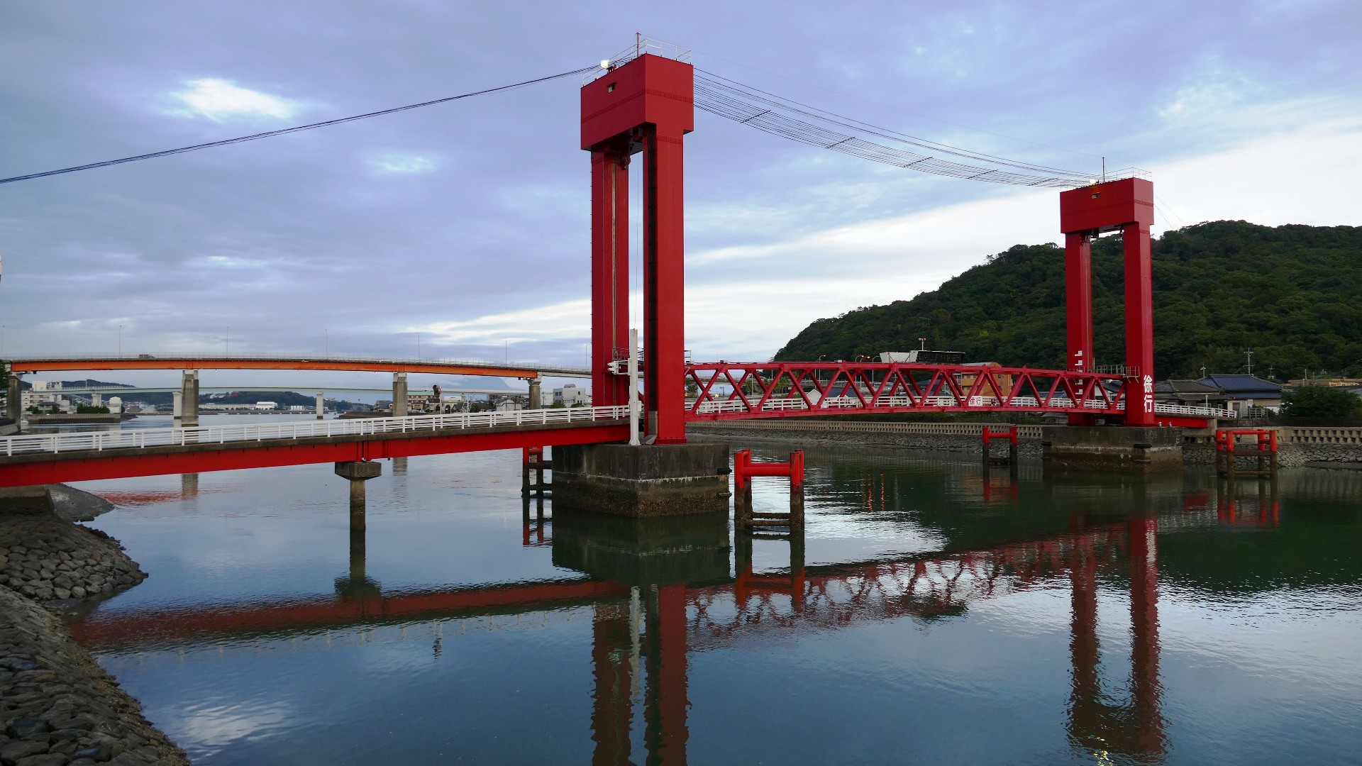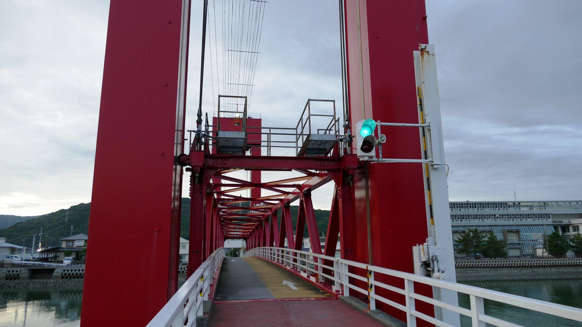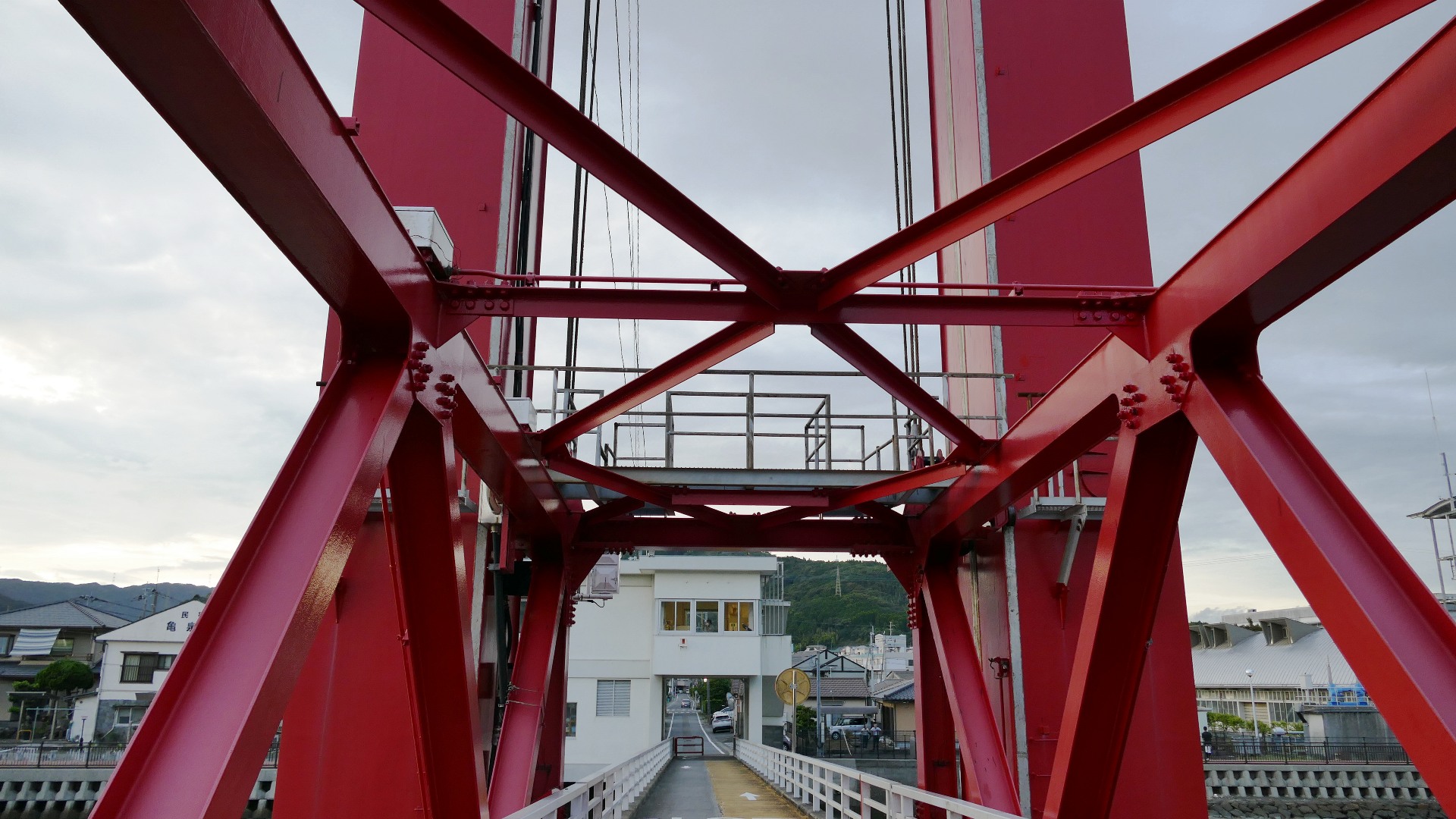 | 航路確保のため、可動橋(昇開橋)。可動部分は58m 赤い塗装から通称「赤橋」 YouTube動画 2024.10 |