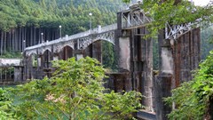 | 千曲川にかかる長野電鉄と国道406号線の併用橋 2011.6 | 大糸線 交差型単弦アーチ橋 2016.7 | 大糸線 穂高川橋梁 2016.7 | 三遠南信自動車道の天竜峡大橋から見る、飯田線天竜峡橋梁 2021.5 | ||||