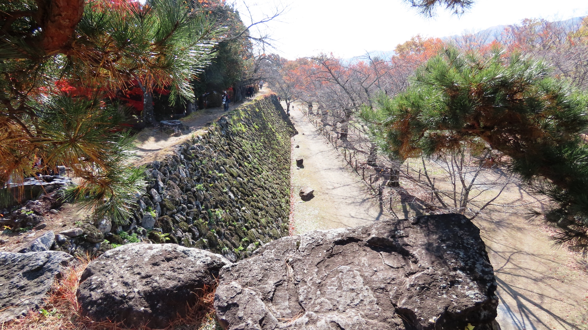 迫力のある三の丸石垣群。 三の平櫓東土塀も国重文。 |