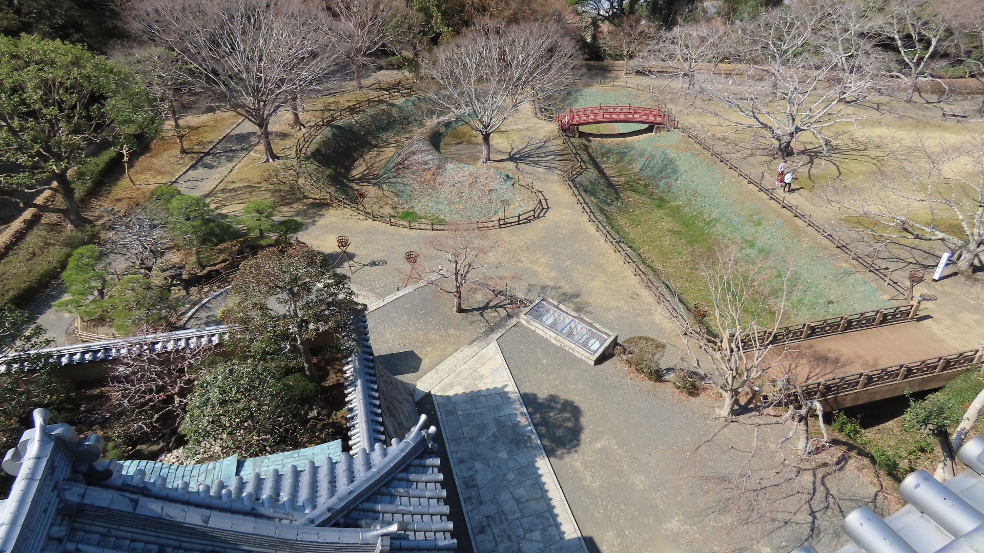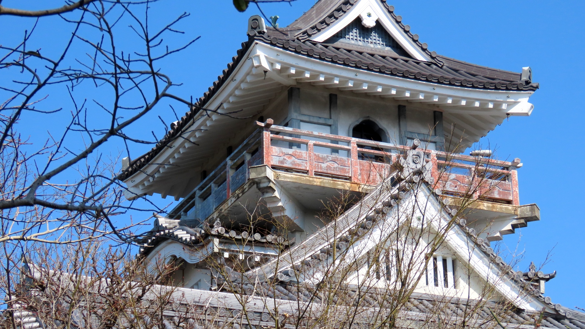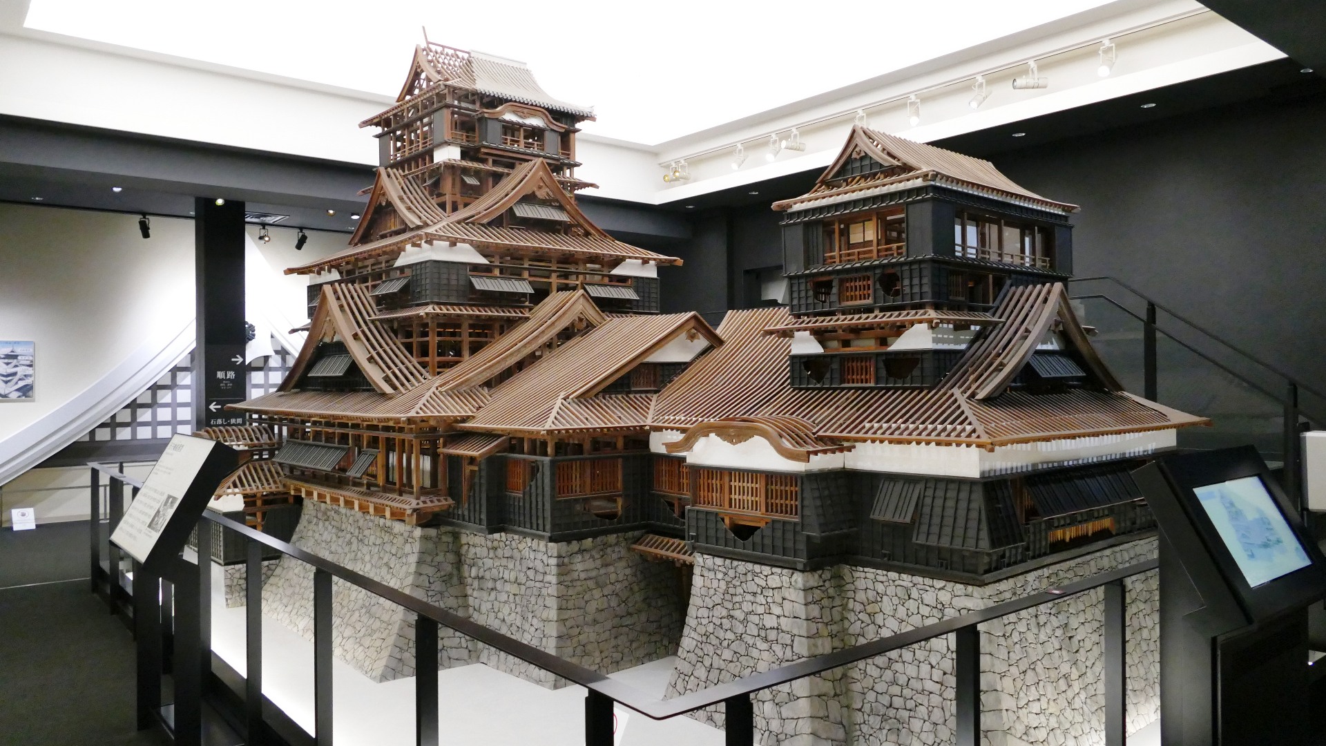 | 天守閣は1837年に火災で焼失し再建されなかったが、1959(昭和34)年に鉄筋コンクリート造りで再建された。古図を参考に観光用に大入母屋破風や千鳥破風・唐破風を追加している。 | |||||||
