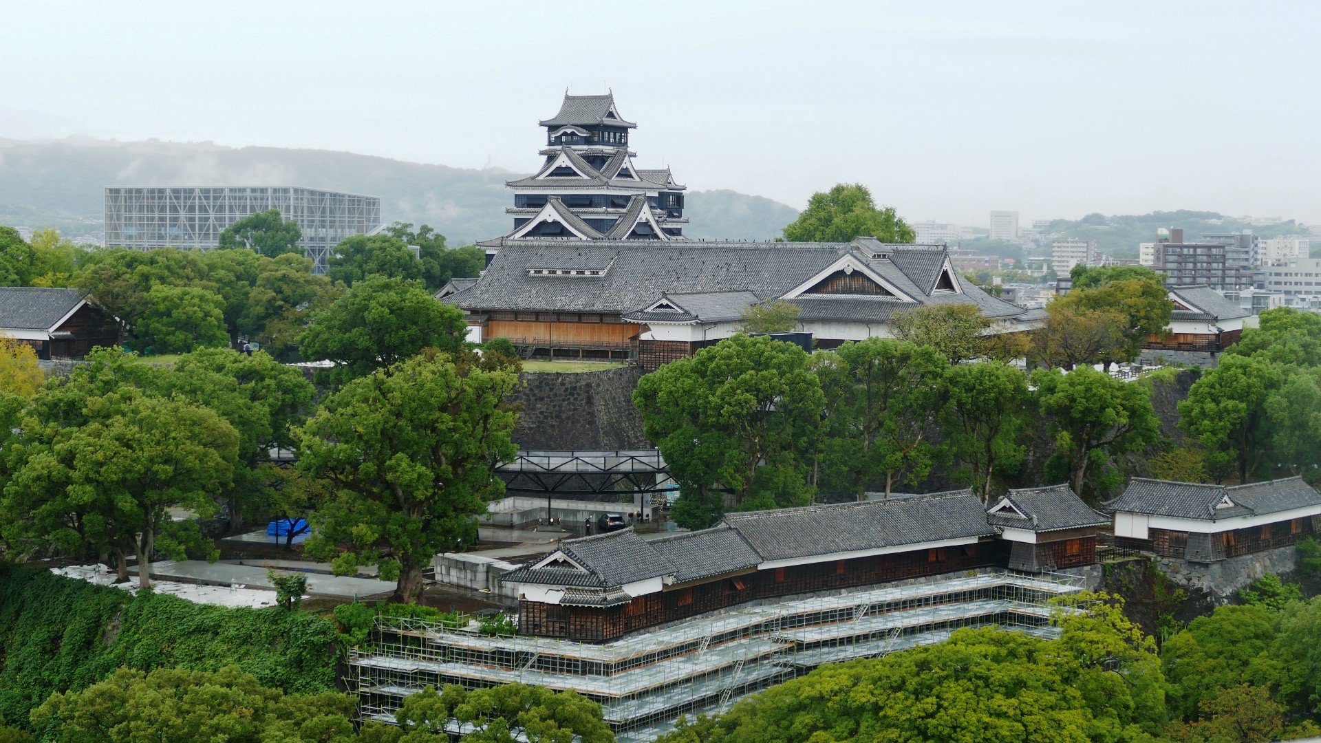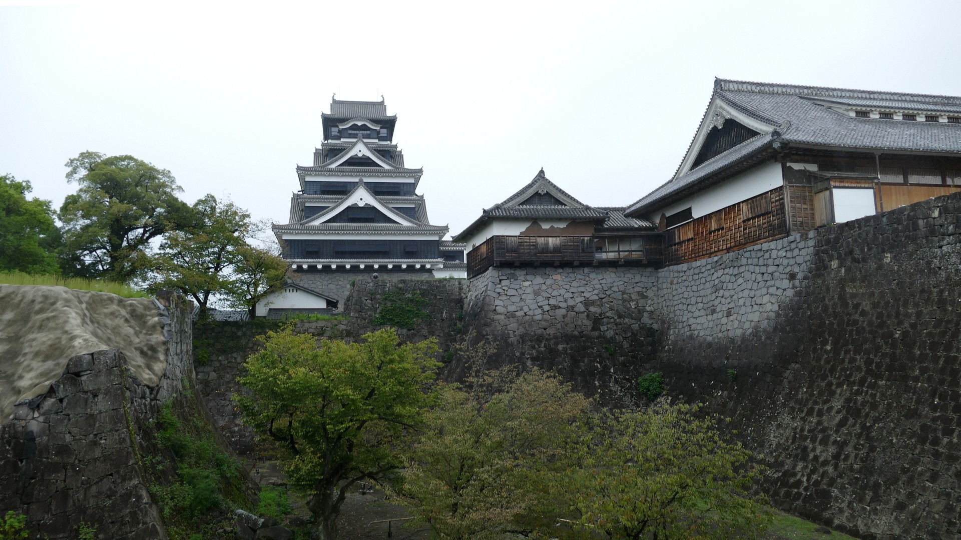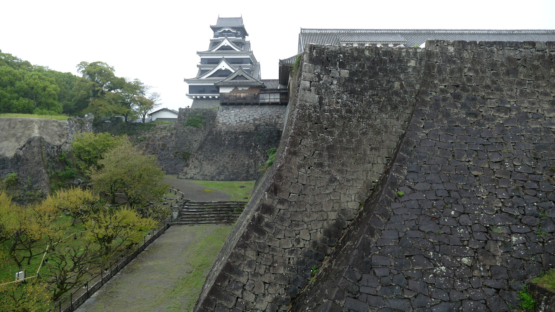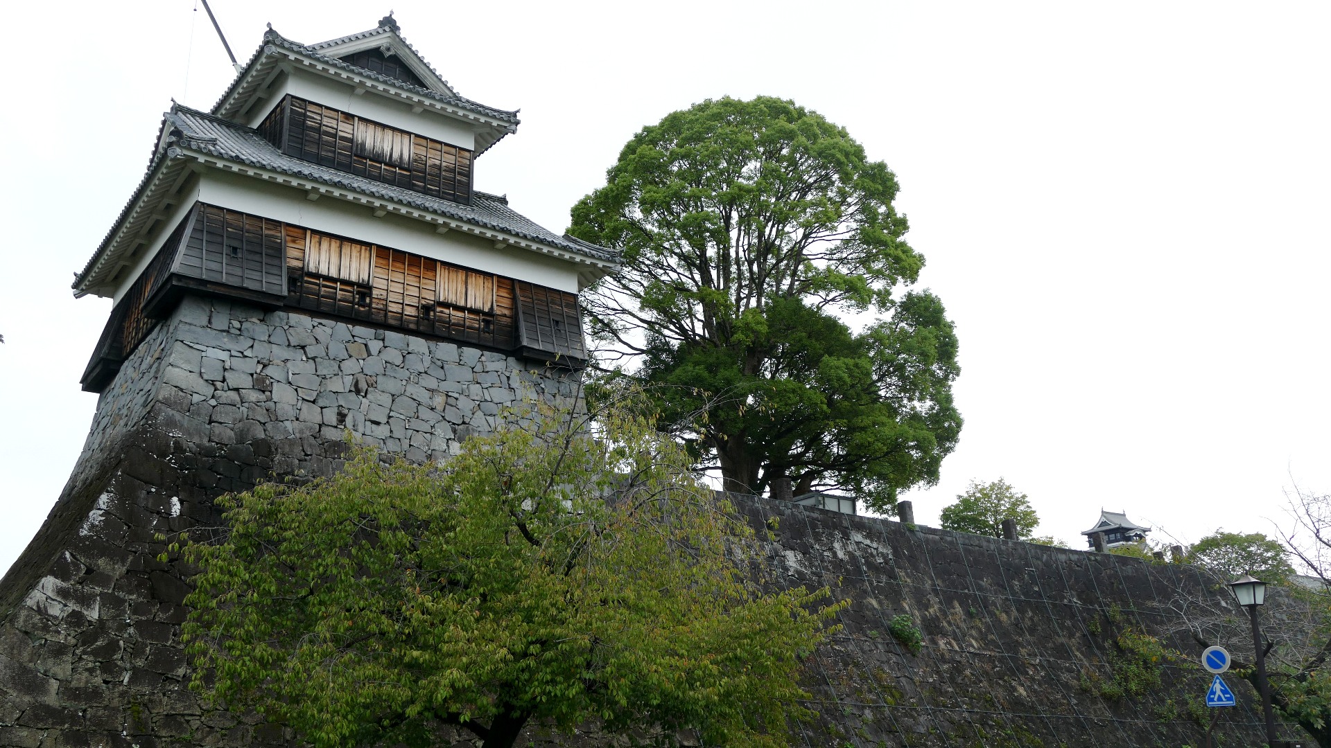 | 1607年に加藤清正により完成。家光時代に加藤家は改易され、小倉より細川家が移封、幕末まで存続した。 1877年の西南戦争にて西郷隆盛軍の攻撃にて、天主閣が焼失するも(政府軍が戦闘の目標にるのを避けるため天守に火を付けたと言われている)落城せず堅牢さを証明している。 2016年4月14日の熊本地震によって、石垣や建築物が数多く崩壊し甚大な被害を受けた。 |
