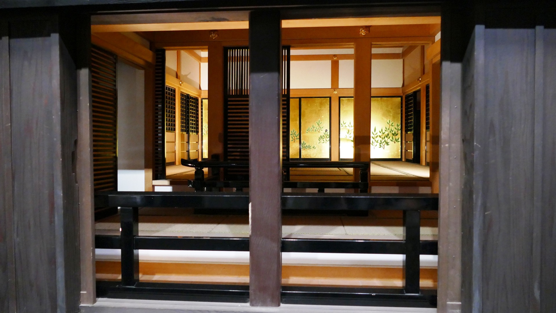 | 内堀を渡ったところにある「二の門」と、本丸御殿に入る格調高い一の門(黒門)で桝形を形成 | 「二の門」と、二の丸御殿に通ずる一の門(櫓門)に太鼓楼があったことから、太鼓門桝形の由来。門の南側には巨石あり。 | 天守内部 最上階からの眺めは最高。天守四階には御座所、急階段 | 月見櫓は開放的。辰巳附櫓には花頭窓。出口を出たところに武将が。 | ||||