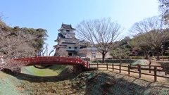 | 標高66mの亀山を縄張りとする平山城。現存天守の中では15mと最も小さい三重三階の天守閣や大手一の門や二の門は国の重要文化財。 1597年、高松に入った秀吉配下の生駒氏隠居城として築城、1615年の一国一城令に伴い廃城となったが、1641年に新たに山崎氏が5万3千石で入場し再建が始まるが三代続いた後、世継ぎ無く改易に、1658年に京極氏が6万6千石で入場し、明治維新まで京極氏が城主を務めた。 丸亀城の歴史・年表 京極家をめぐる戦国の人々 京極家略系図 |
