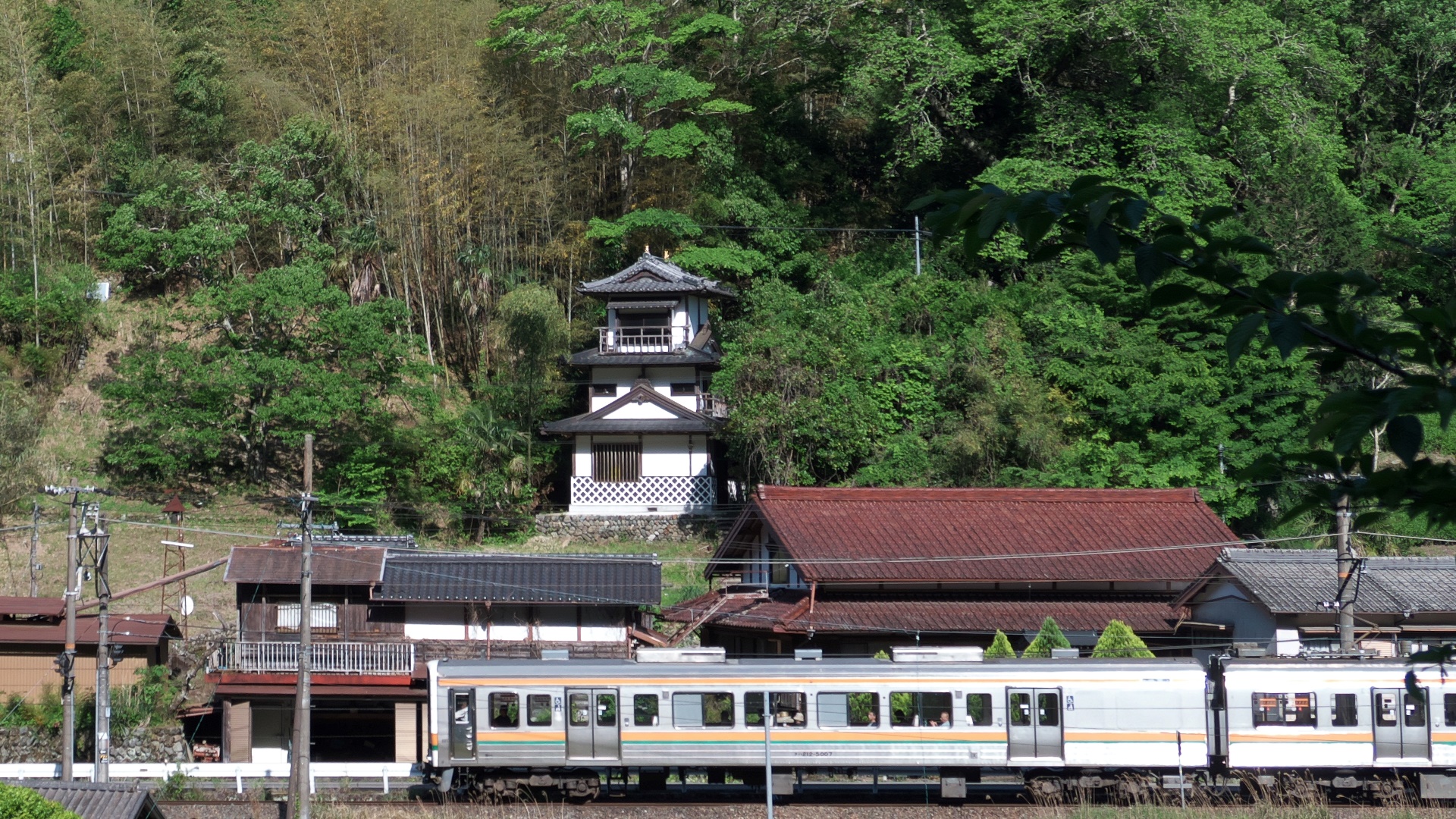 | JR飯田線・出馬駅近くにある天守風建物。 個人所有なのか何の用途かわからないが、なかなかの建物 |