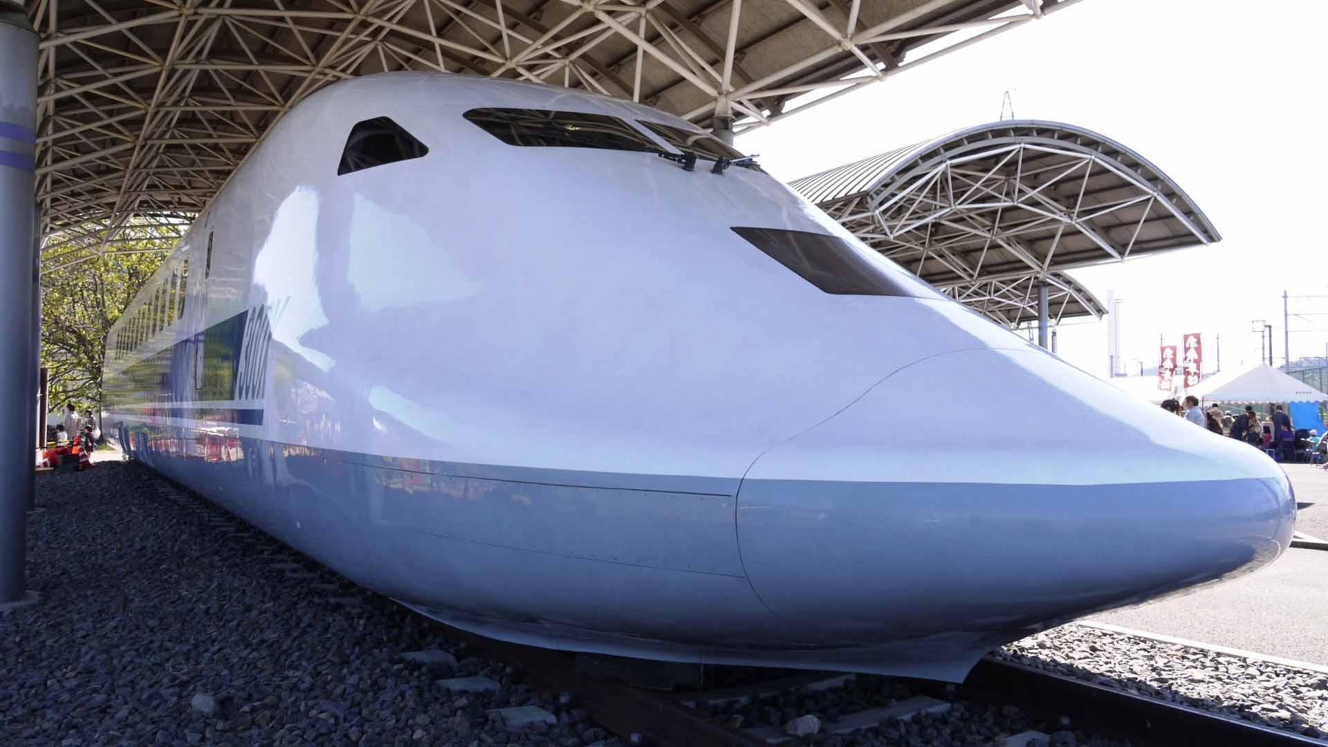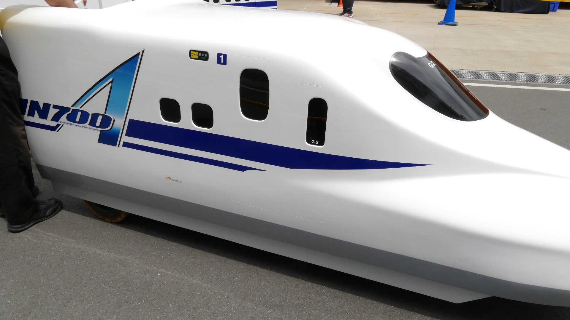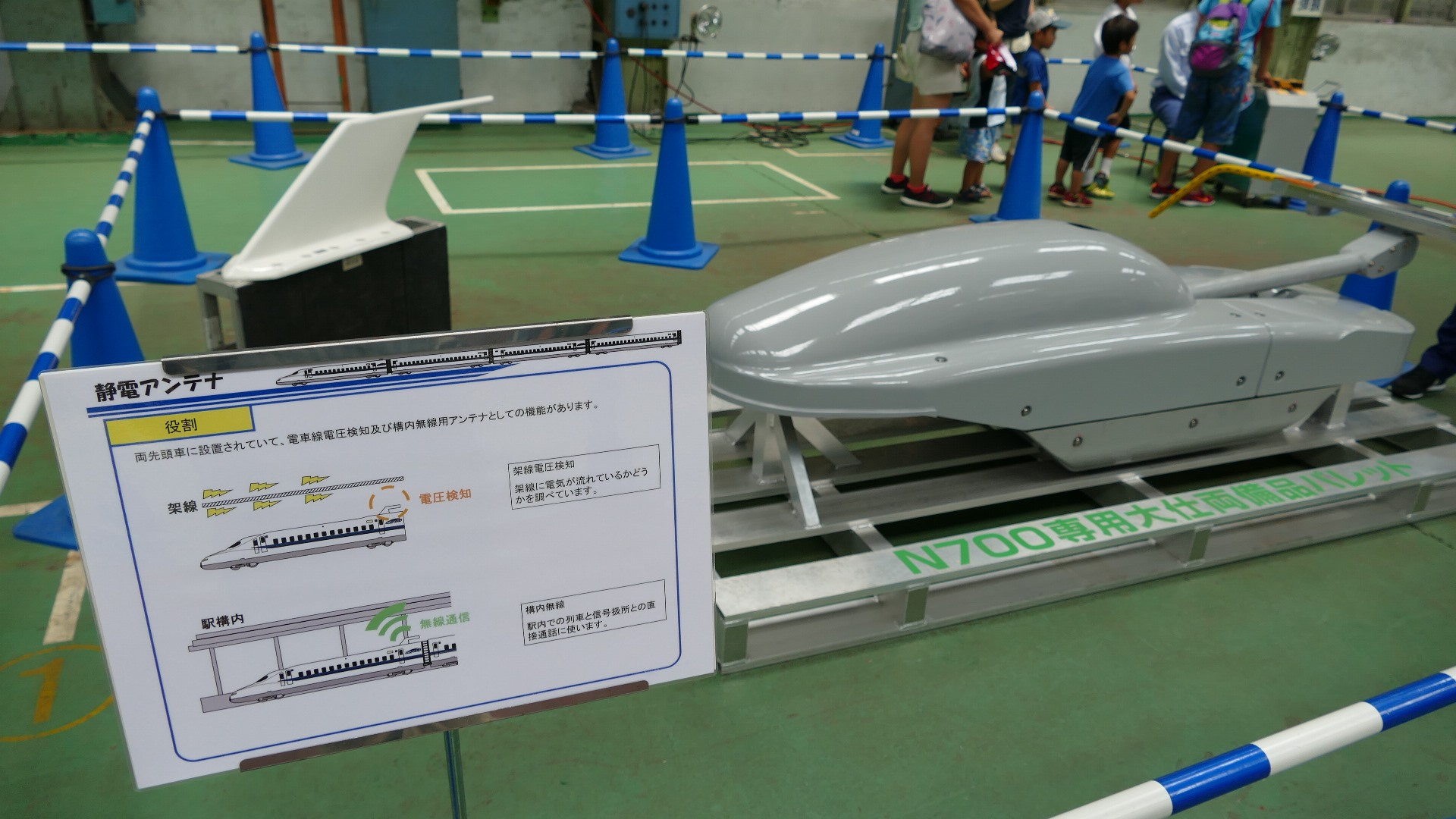 | N700系全景。 | N700系の先頭カバーの展示。 | N700系の先頭カバーをはずしていた。 救援用の密着連結器が入っている。 なんだかマヌケ顔。 |