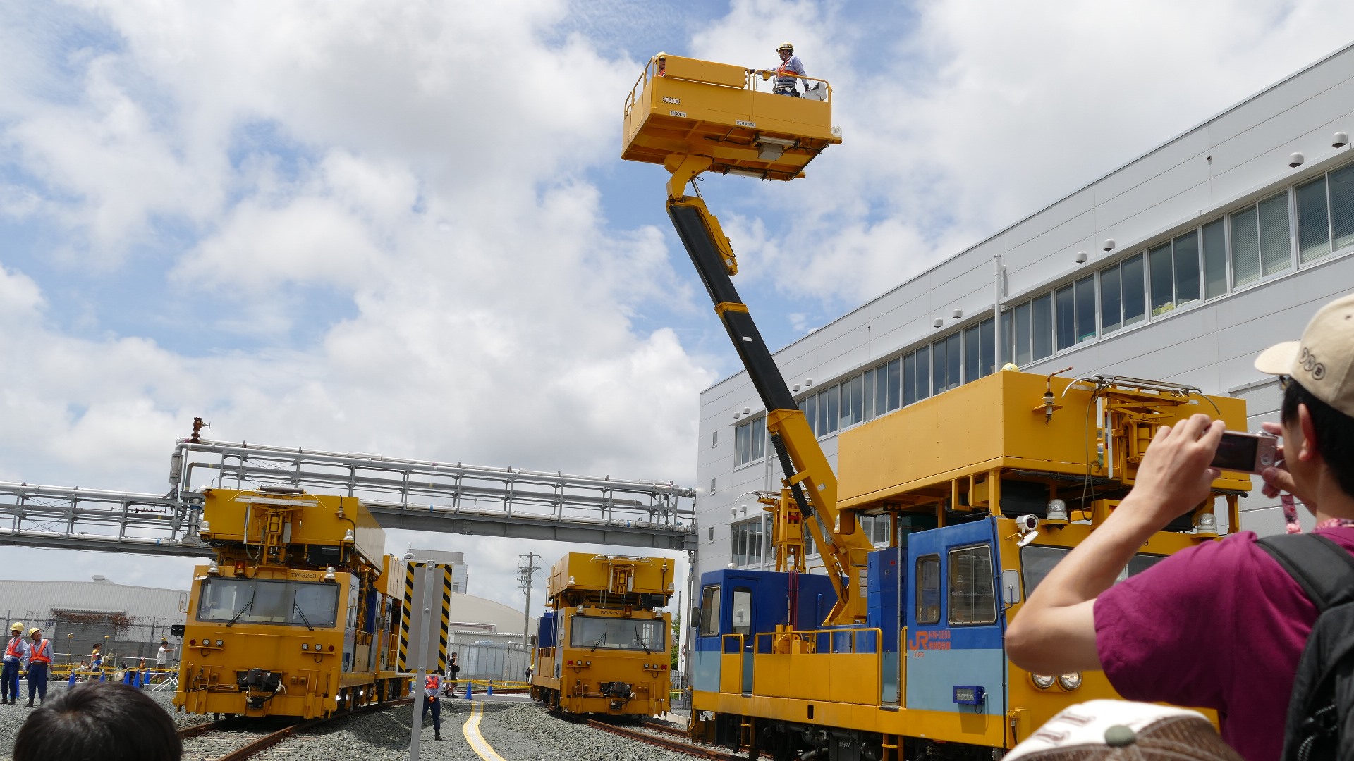 絶滅危惧種になりつつある700系 | 人気はやはりDYに軍配があがる。 | 旧工場解体中 | 保線用車両。乗車体験や実演もしていた。 | トラバーサ | ||