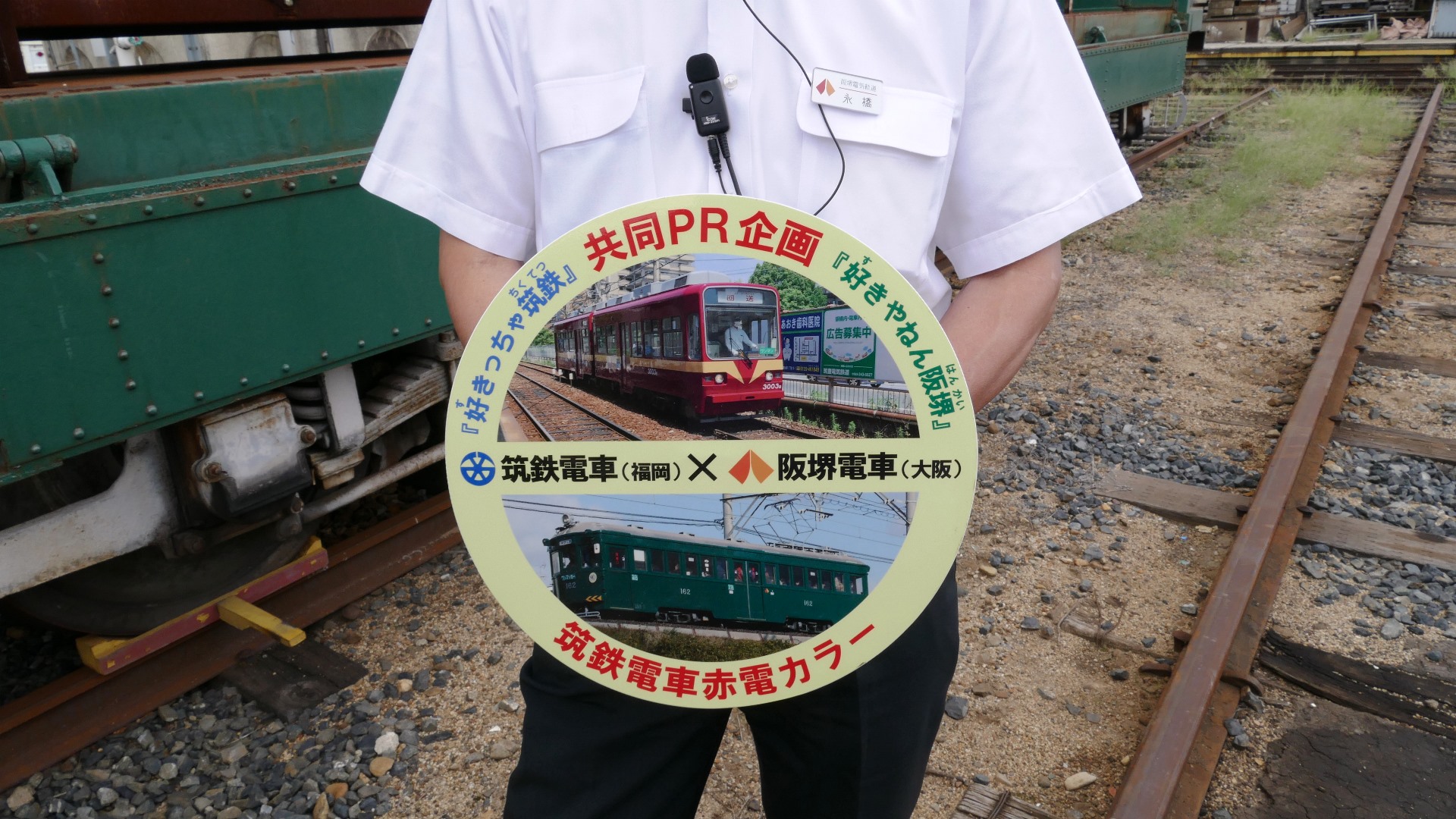 | 阪堺電車撮影会 2020.9.20 阪堺電車の頁はこちら 近鉄「ひのとり」記念乗車に併せて、筑鉄コラボ企画の撮影会に参加した。(参加費4,500円) 行程は、14:00恵美須駅から貸切電車にて我孫子道車庫へ移動、約1時間撮影会、再び貸切電車にて恵美須駅へ戻り、恵美須駅旧駅構内にて部品・グッズ販売会が行われた。 |