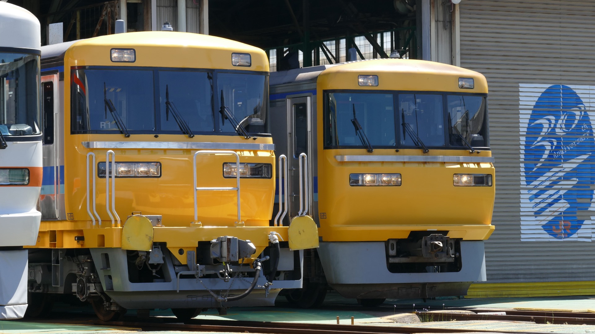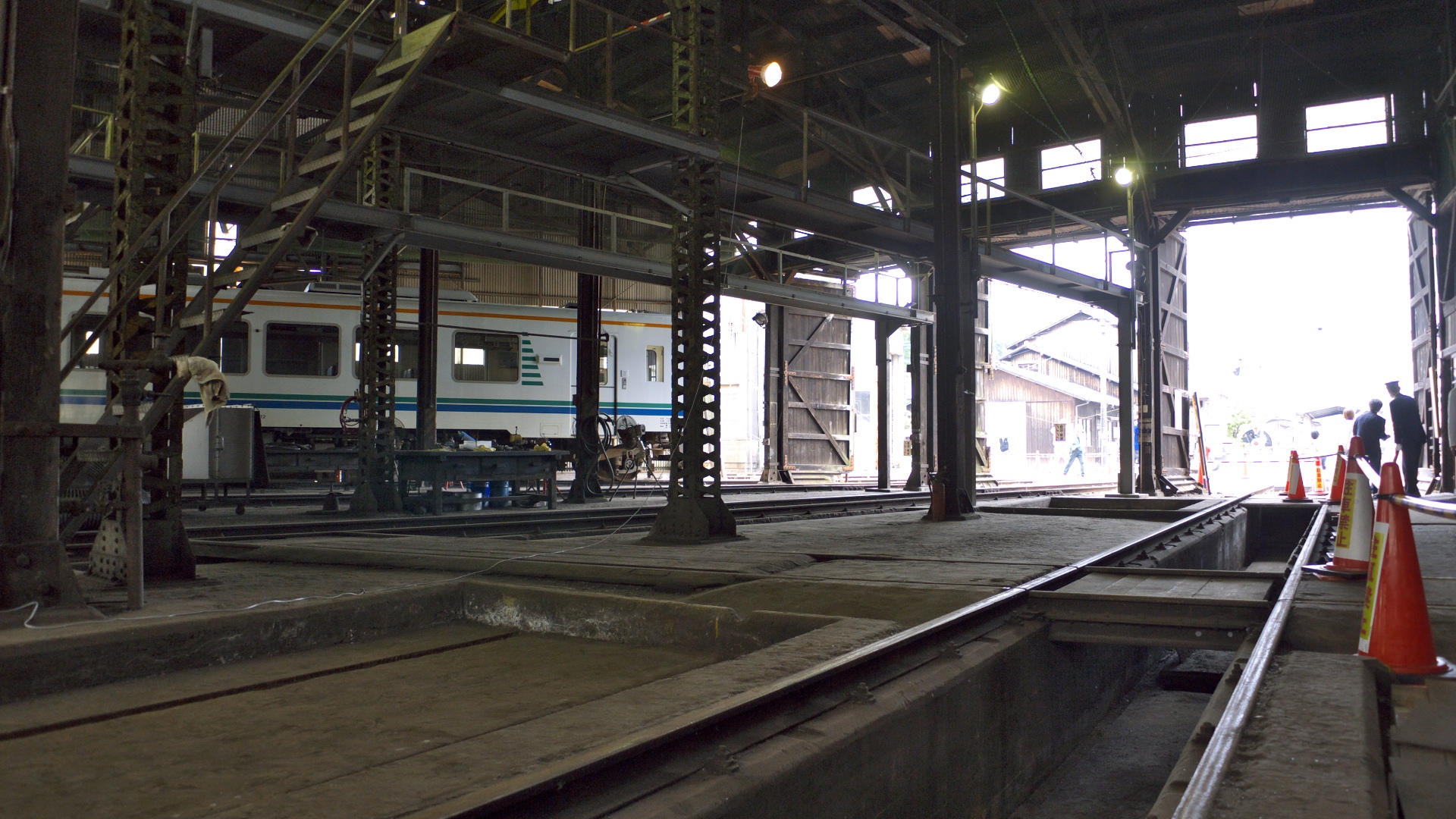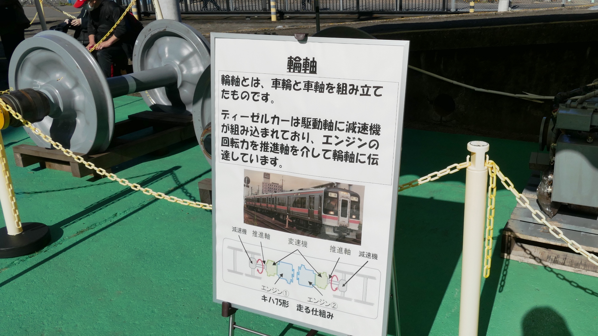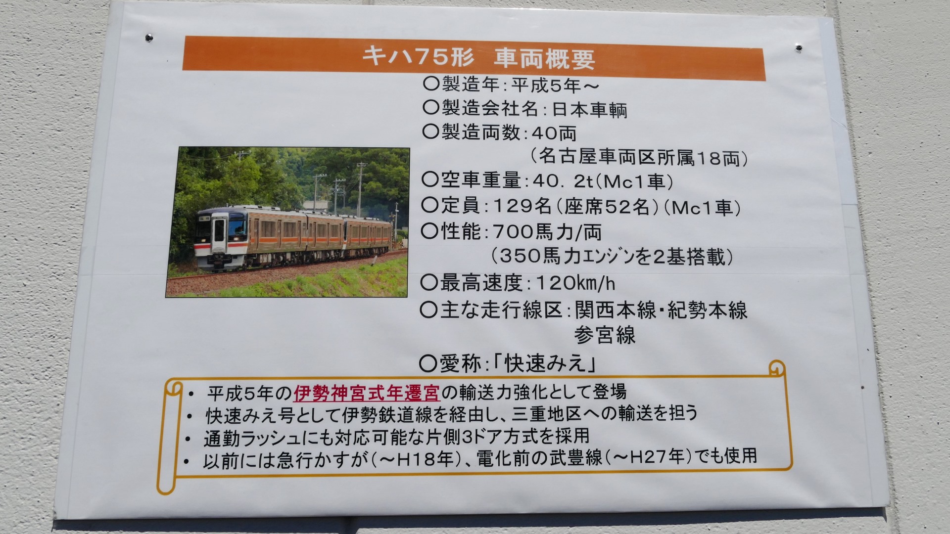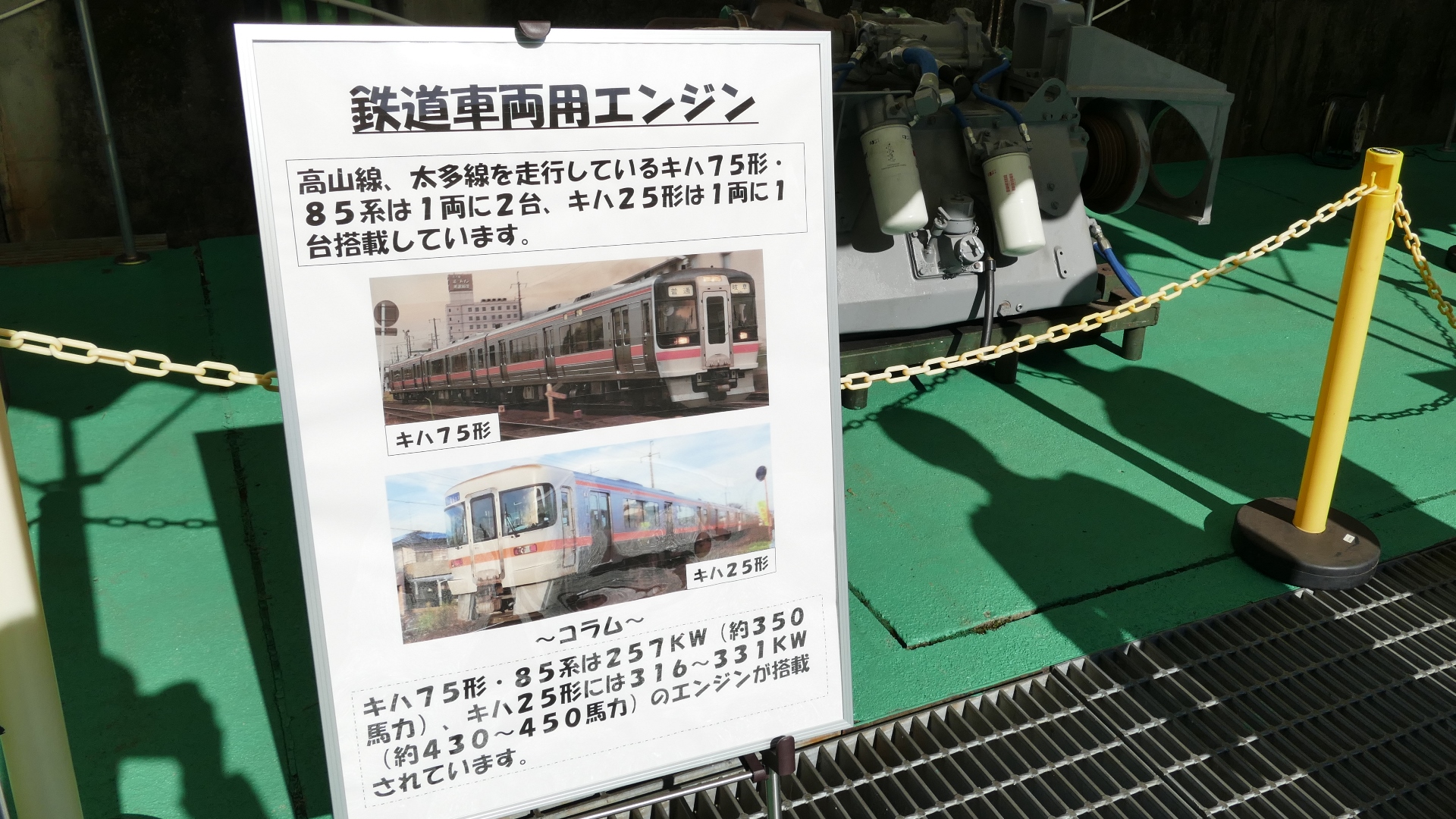 普段は入れない美濃太田車両区 輪軸やエンジンなど キハ75急行幕 |