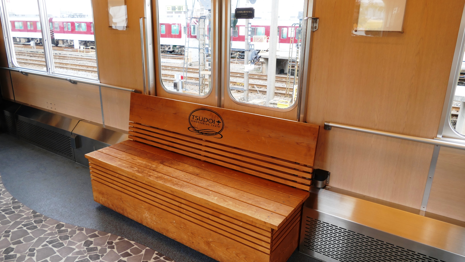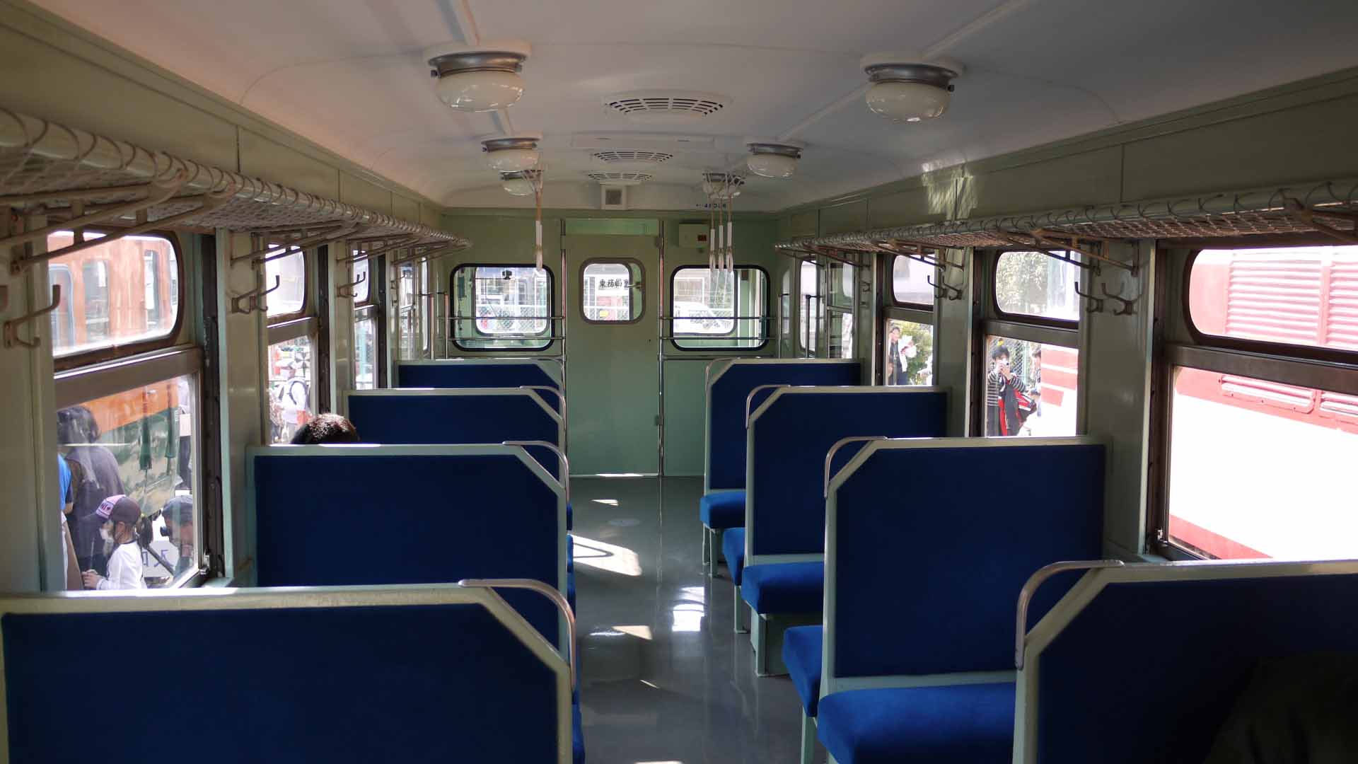 | モハ52形の座席 木のぬくもりが感じられる。 |