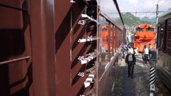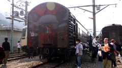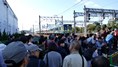 | 史上初の出来事なので、見物ギャラリーで激混みかと想像したが少し拍子抜け。 | 大蛇の如く工場へ進入して行く。 | 会場は激混み | 車掌ミーティング? | ||||