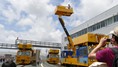 | 2回目の車体上げ・乗せ作業実演。 今度が横から見物。 |