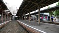 | 端の真正面から見える所から超望遠。 標準軌と狭軌の3線軌道でした。 |