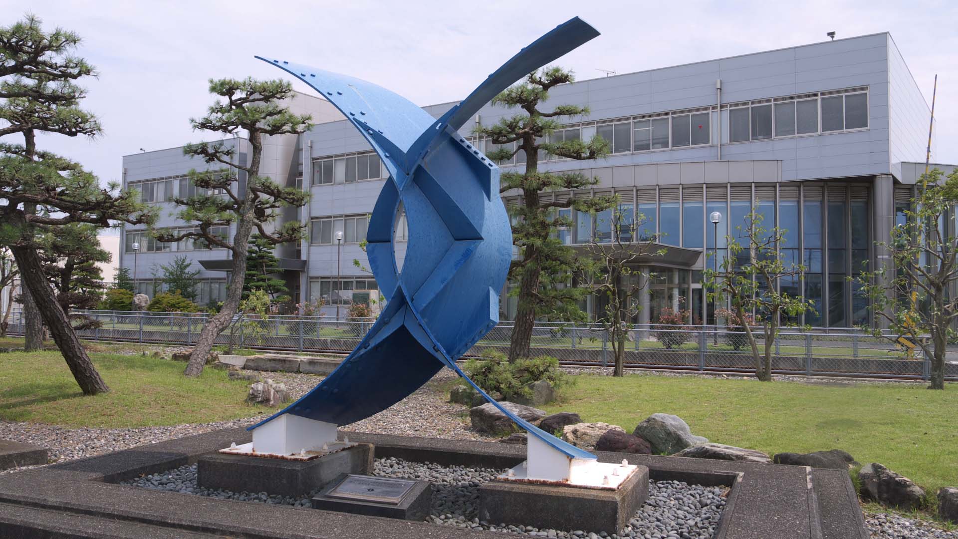 0系のスカート(排障器)で作られた モニュメントが西口建屋前に飾られている。 |