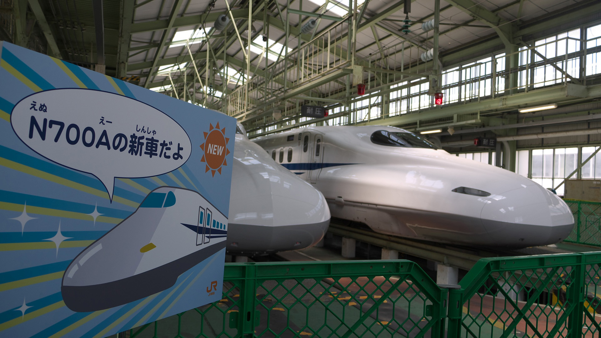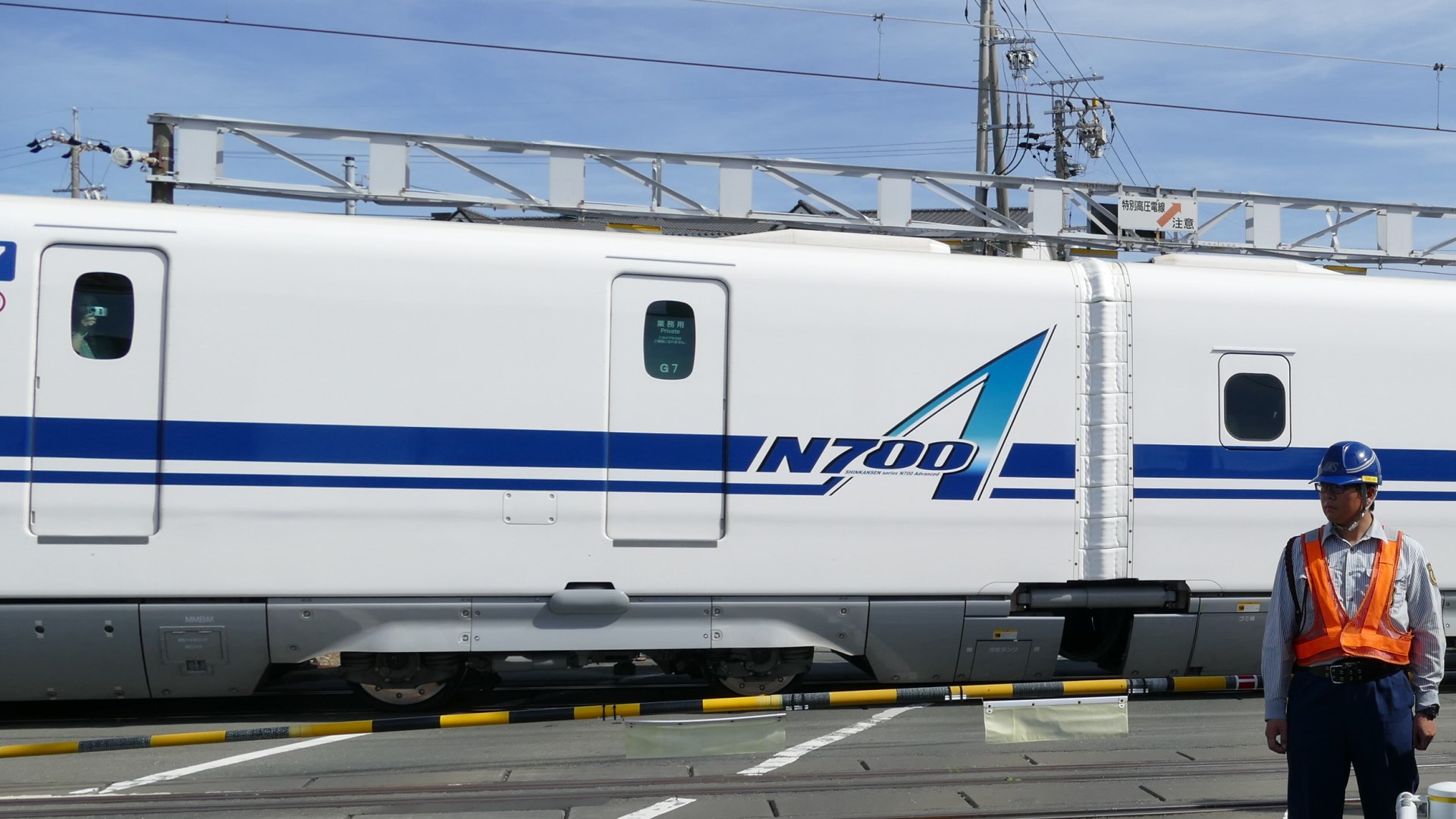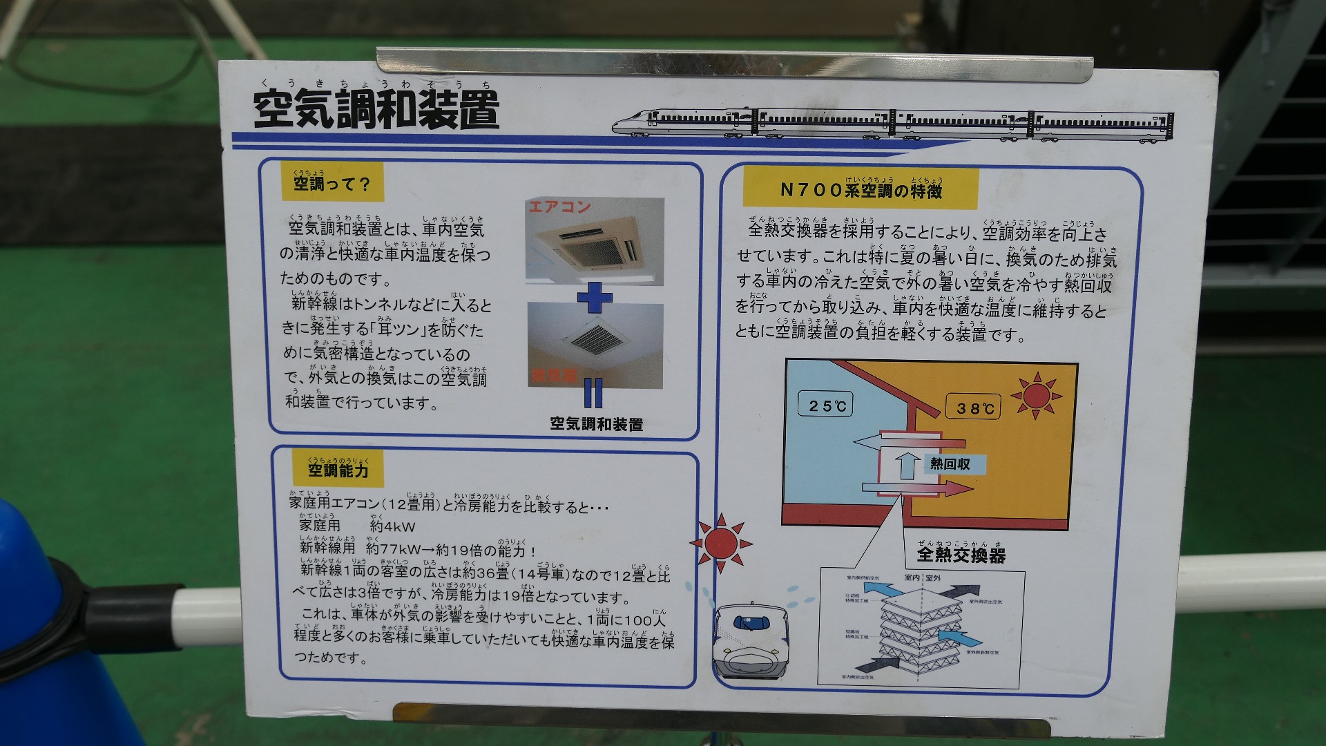 | 普段の「なるほど発見デー」実演とは違い、検査途中の実機車両が使われた。 ・先頭カバーの取外し、床下機器の取外し、「N700A」ロゴシールの取外し、がされている。 |