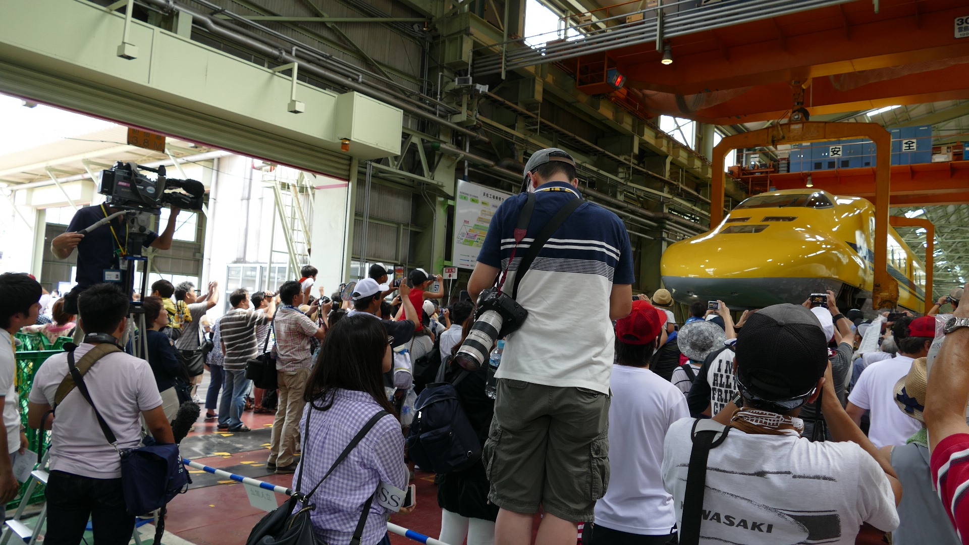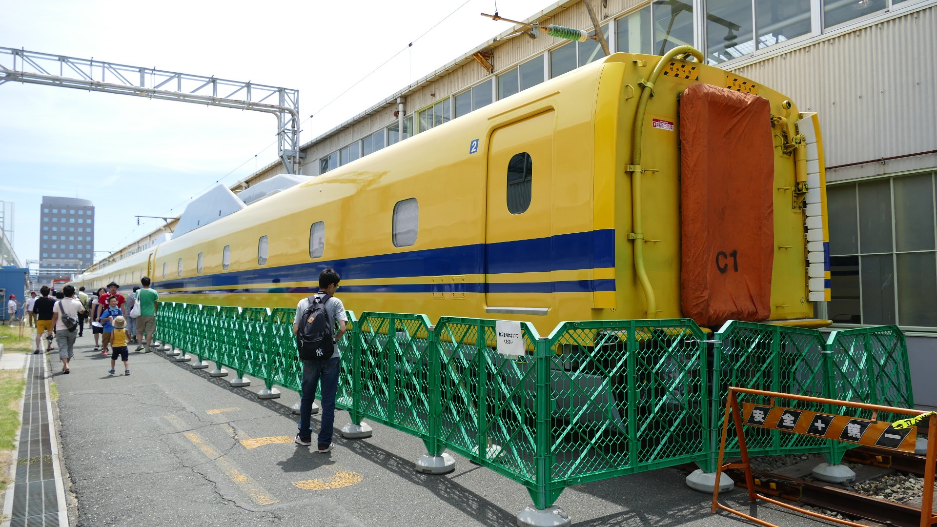 | JR東海 浜松工場 新幹線なるほど発見デー 2015/7/26 史上初めて、東海道新幹線唯一の踏切を通過する「お客さんを乗せた新幹線」(ツアー団体列車)と「ドクターイエロー」の空中浮遊を堪能するため2年連続出撃! |