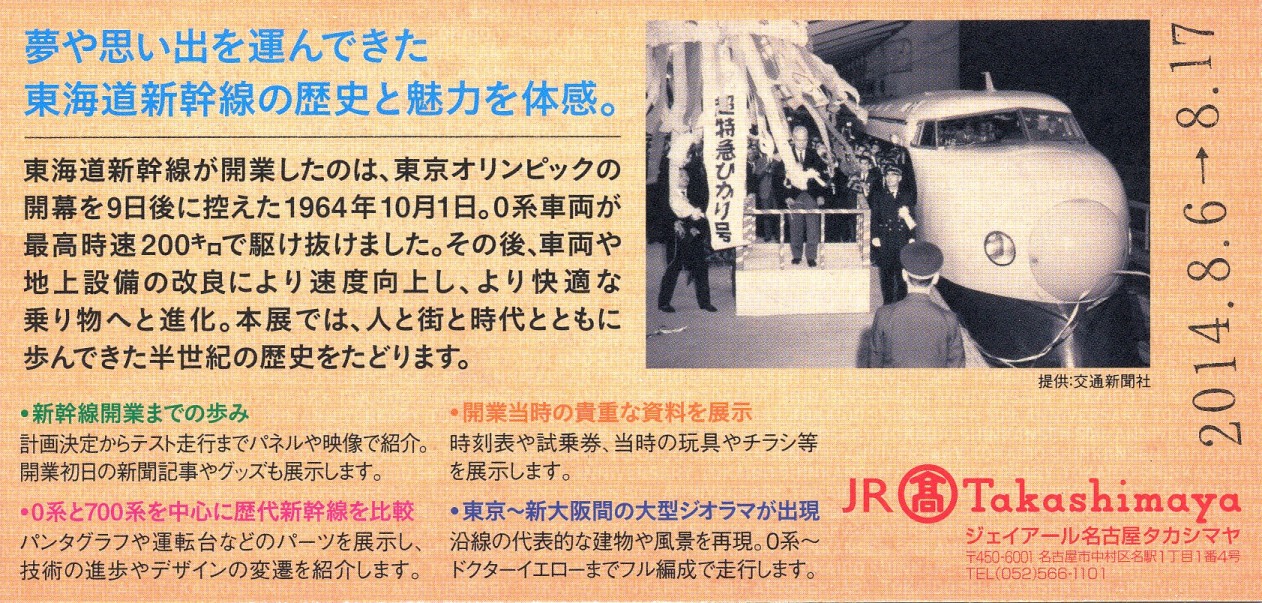 | JRタカシマヤ 夢の超特急展 2014/8/13 東海道新幹線開業50周年記念イベント。入場料800円。リニア鉄道館(1,000円)と比べると・・・ |