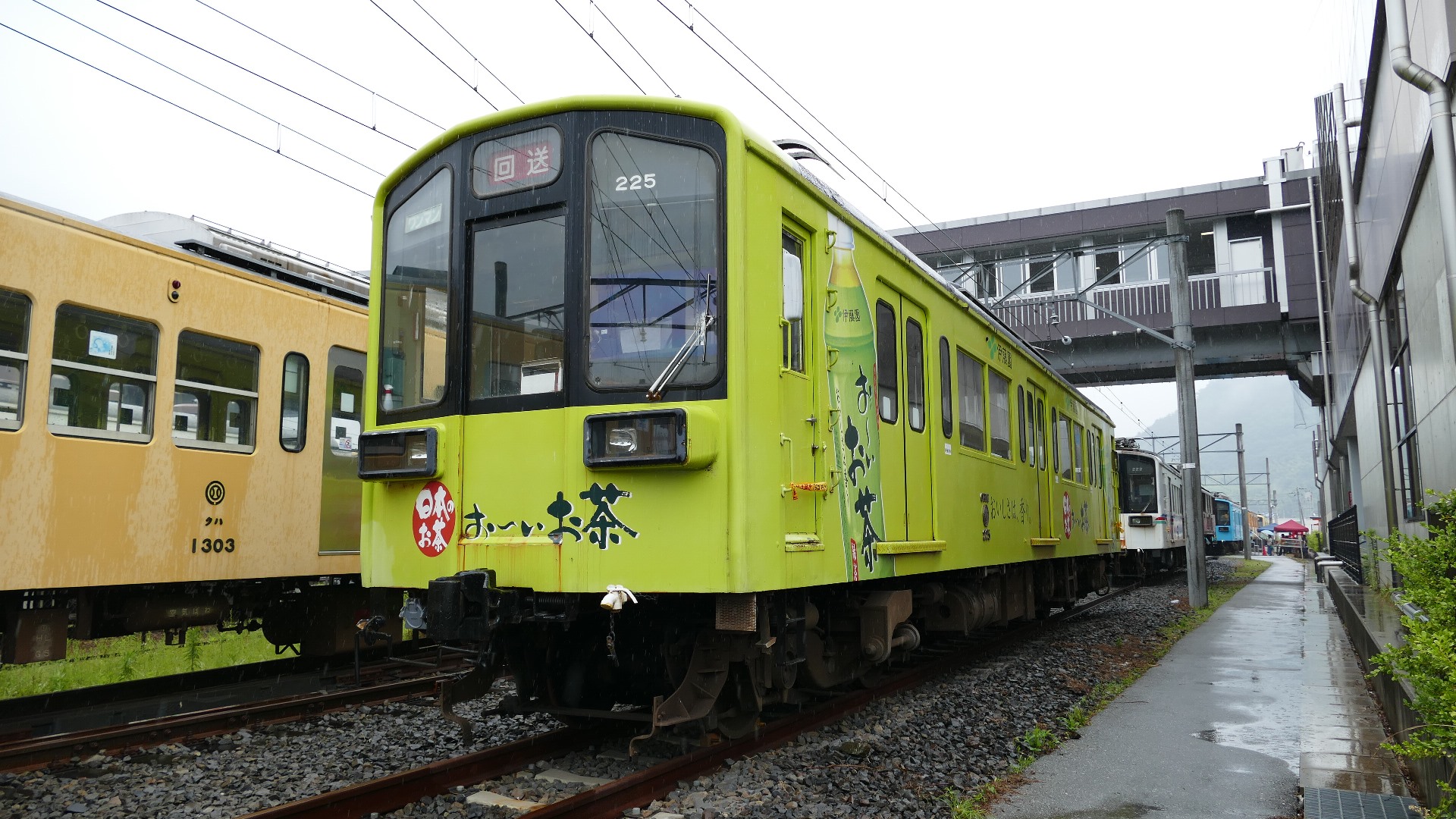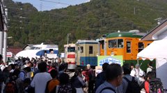 | 筑鉄コラボ企画でモ162が筑鉄電車赤カラーとなり幕も筑鉄化。 | 恵美須駅旧駅構内にて即売会 | ||||||