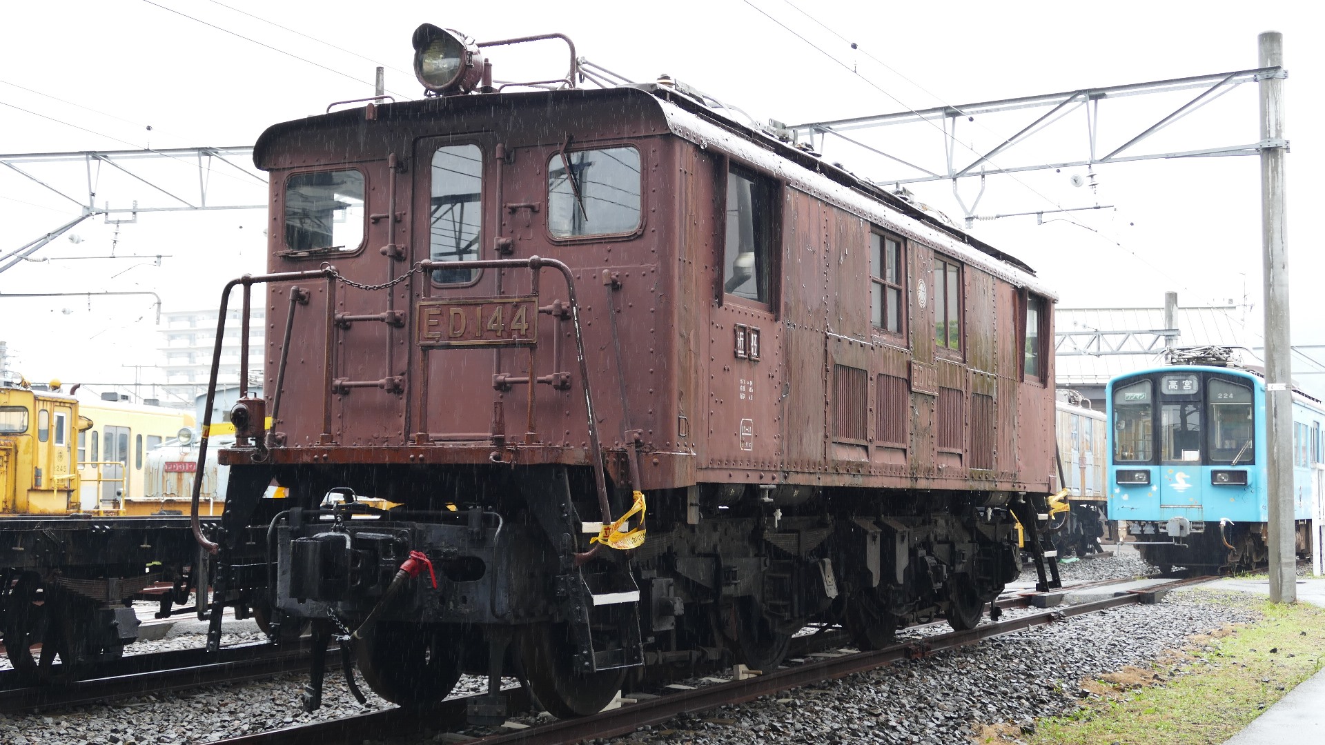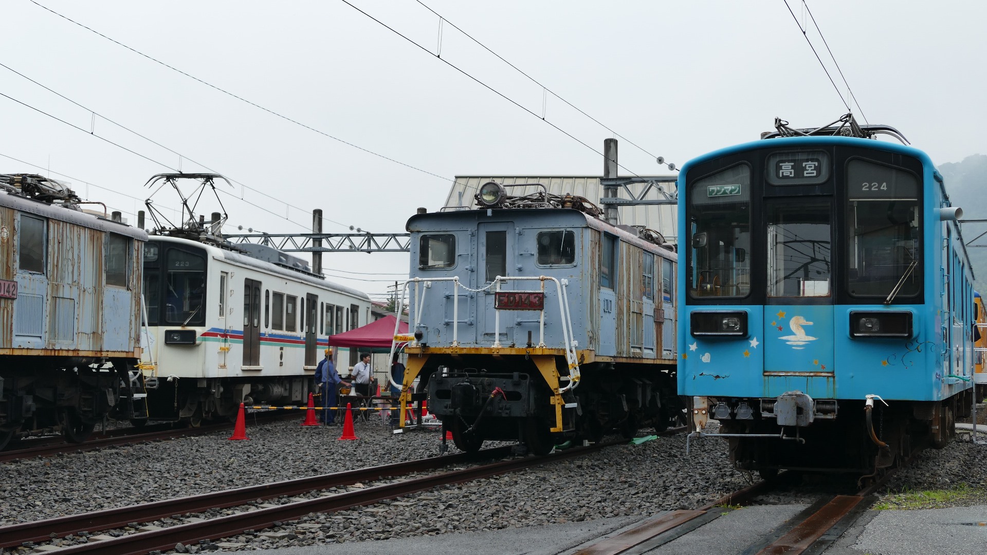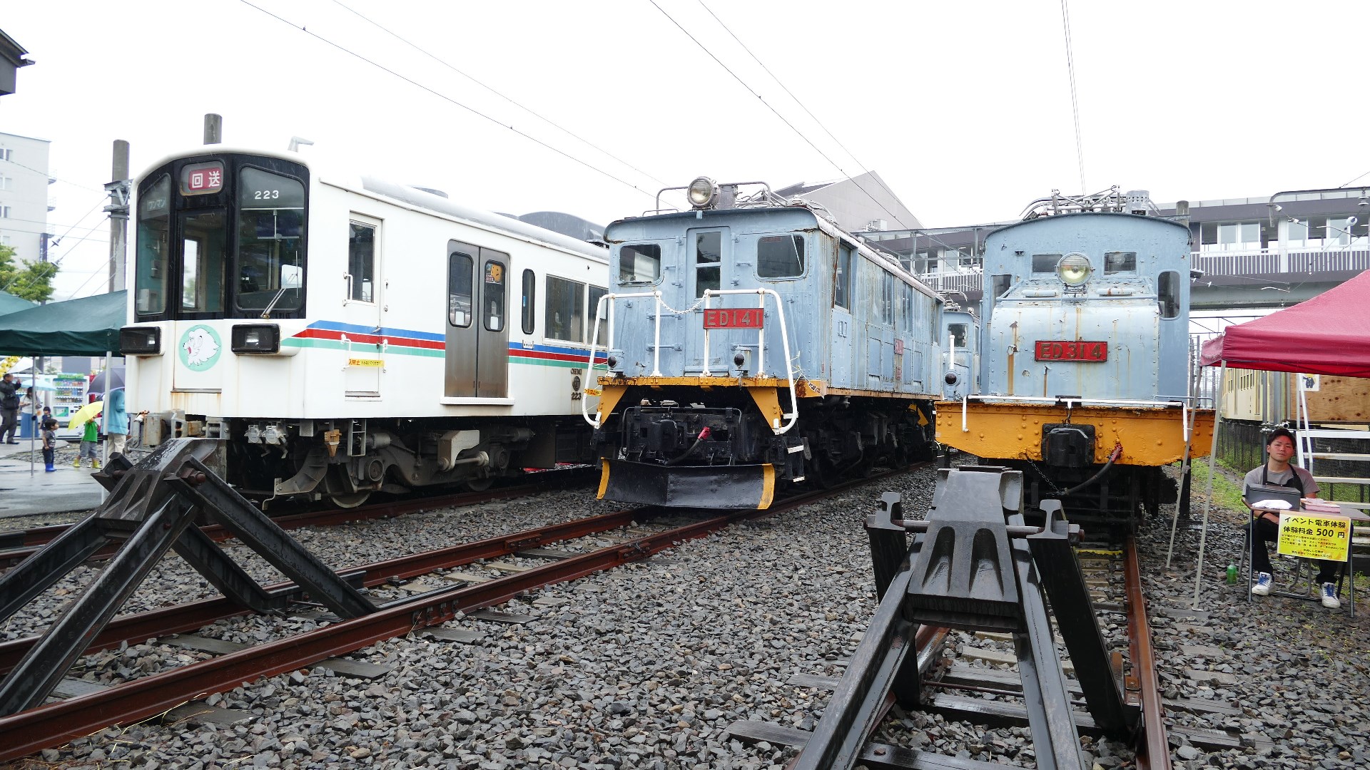 | ED14形。米国ゼネラルエレクトリック社製の電気機関車で、飯田線等を経て1960年に近江へ移籍。 | 電気機関車は現在でも、保線や入替用として細々と活躍している。 | 電車運転体験のイベント。事前申込抽選で昼食付で1万円の参加費。資格は小学4年生以上なので、子供が運転していた。使用車両は2015年に運用離脱した近江鉄道最後の「つりかけ車両」220形。 | |||||