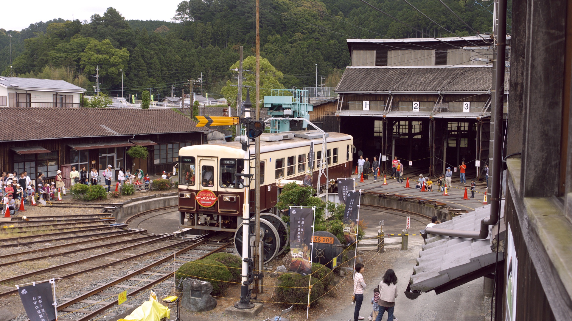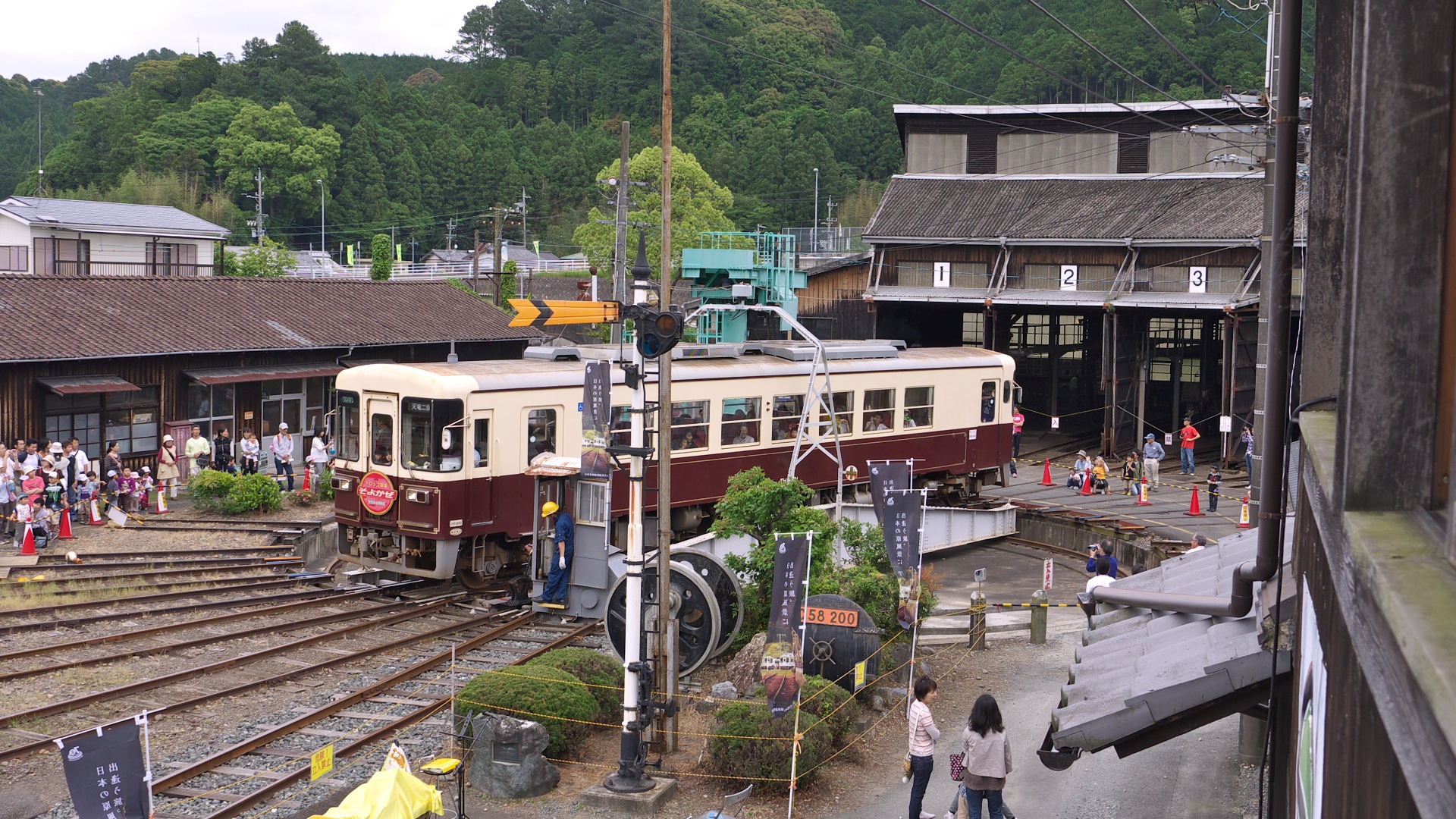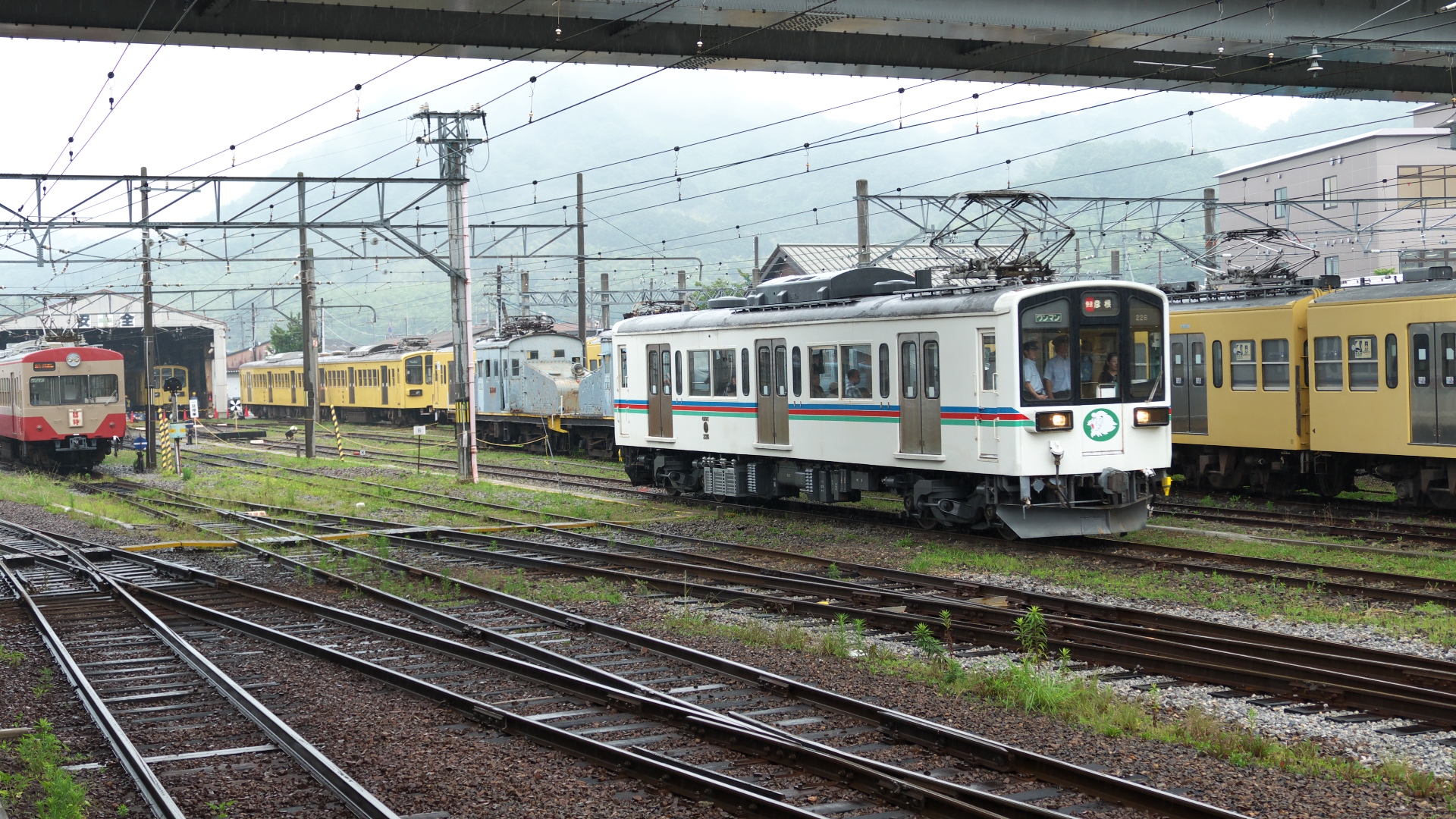| ED14形。米国ゼネラルエレクトリック社製の電気機関車で、飯田線等を経て1960年に近江へ移籍。 | 電気機関車は現在でも、保線や入替用として細々と活躍している。 | 電車運転体験のイベント。事前申込抽選で昼食付で1万円の参加費。資格は小学4年生以上なので、子供が運転していた。使用車両は2015年に運用離脱した近江鉄道最後の「つりかけ車両」220形。 | |||||