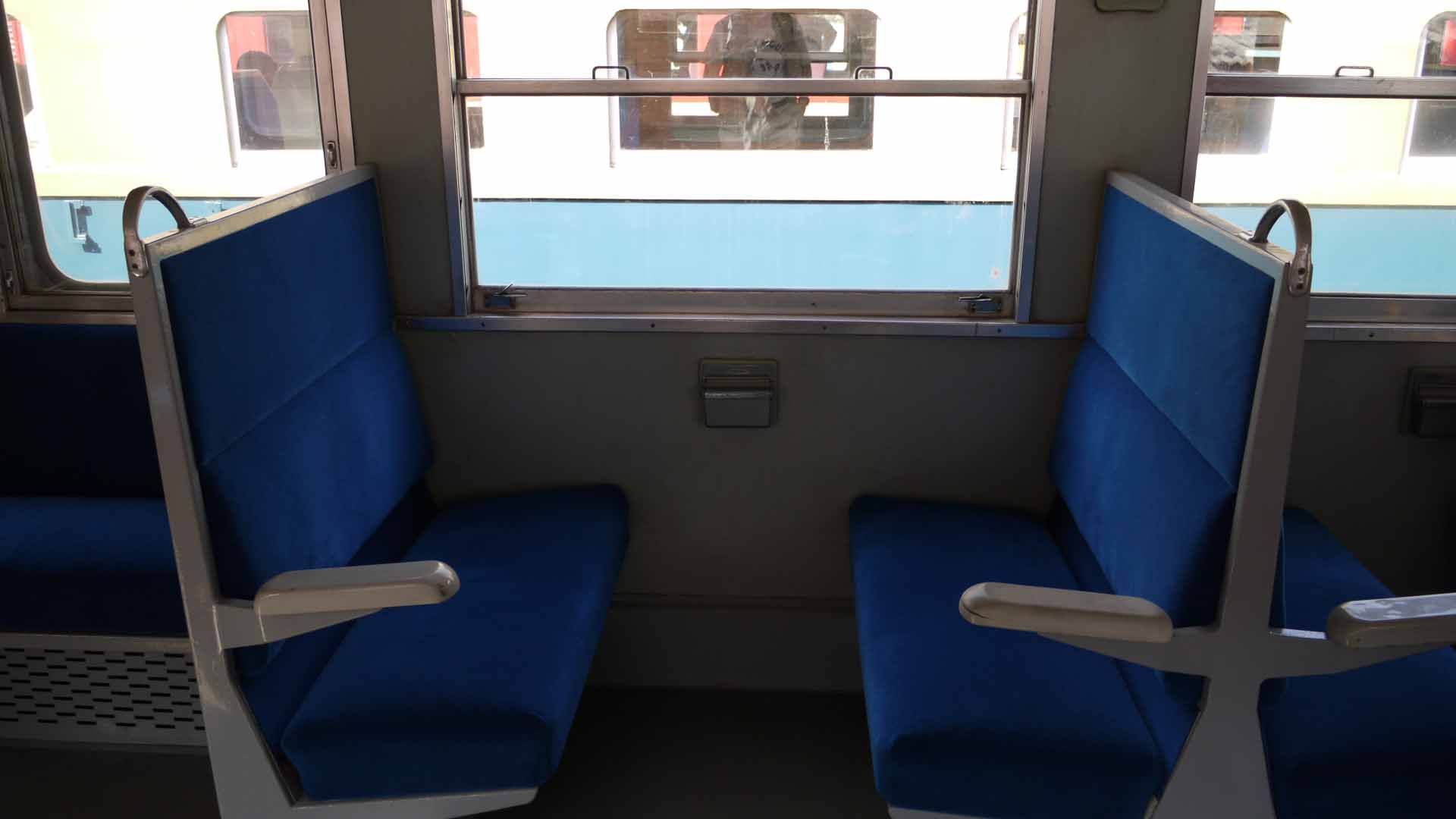| クハ111系 湘南色! | クハ111系の座席。 懐かしい直角ボックスシート |