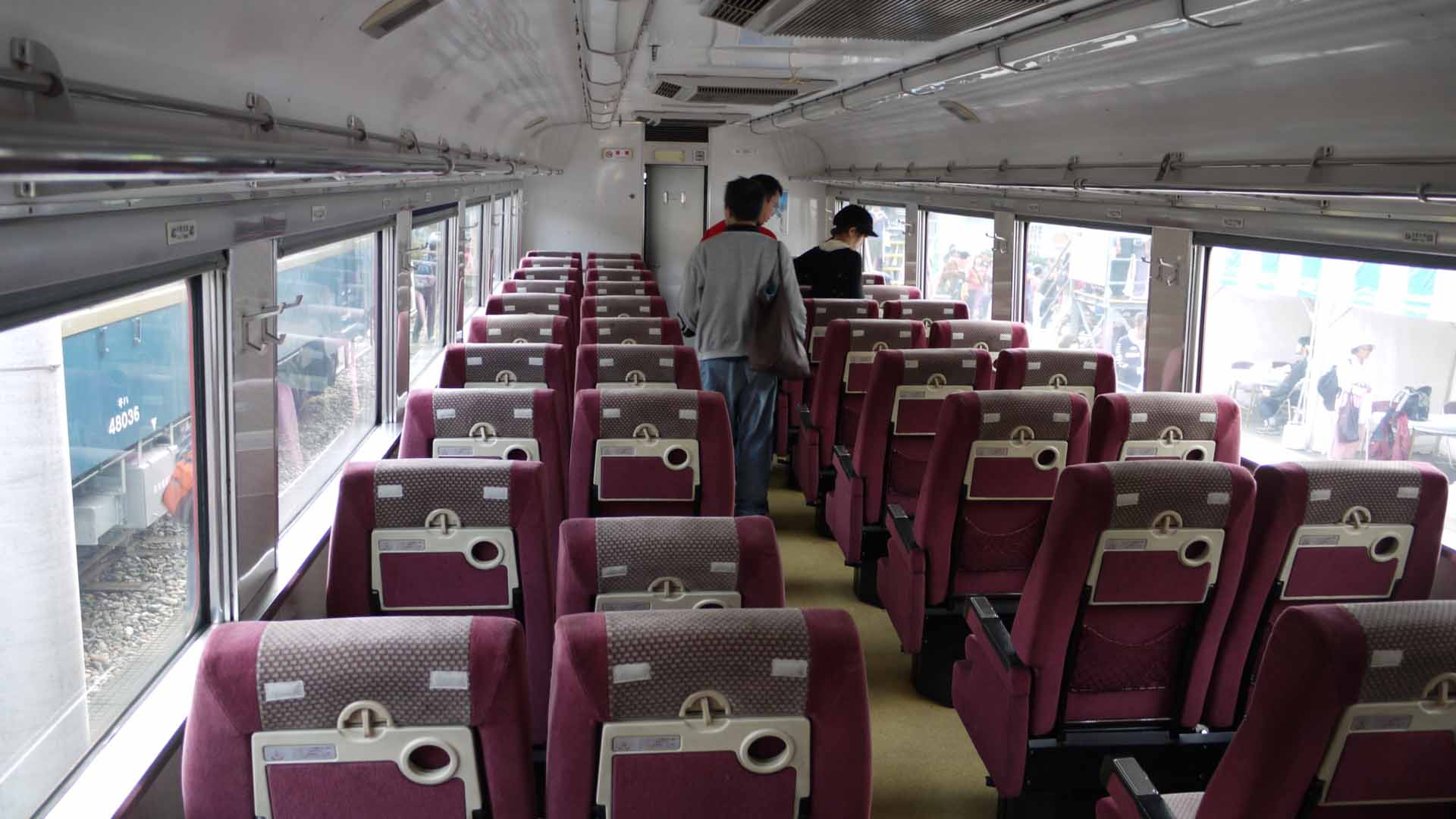 キハ48000形は手動扉 | キハ181形「しなの」の顔 | 「しなの」の車内 | ||||