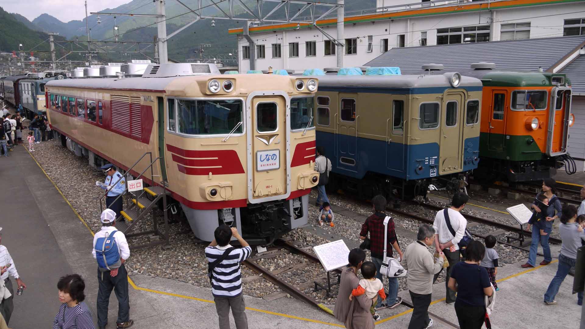 | 臨時特急も走り、新型ハイブリッドHC85系の展示もあり、盛り上がっていた。 | 普段は入れない美濃太田運輸区 アルミカート体験乗車などなど |