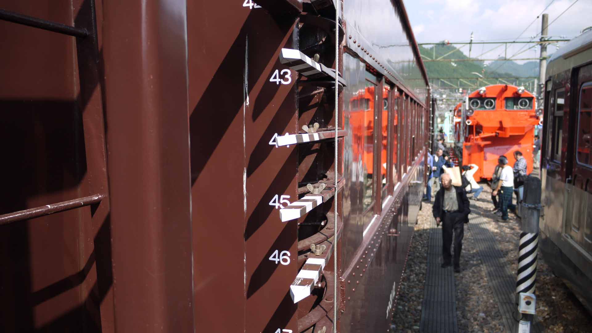 | 名古屋貨物ターミナル駅にて開催 | 抽選でDD51牽引の車掌車に乗れた | ピッカピカなEF64 台車写真 |