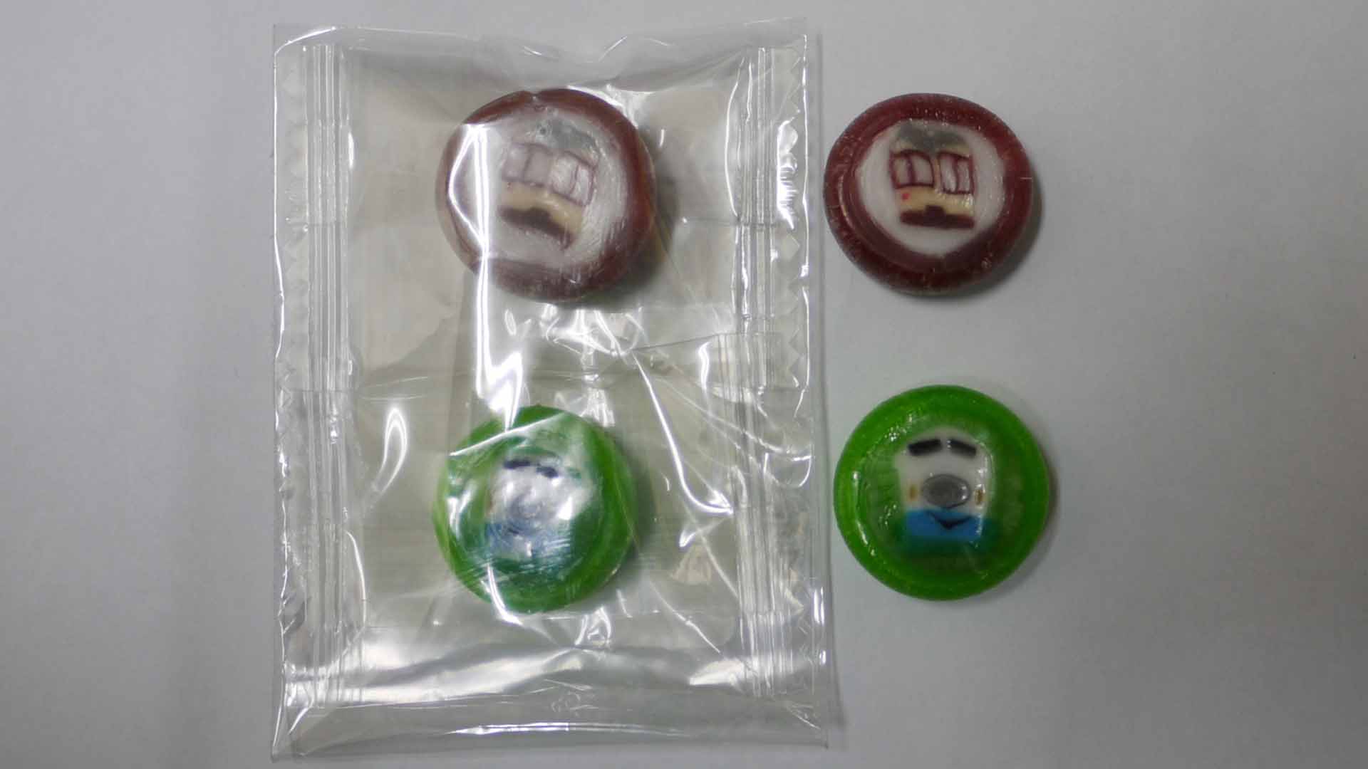 | 来場記念の飴。 モハ52形と0系のデザイン |