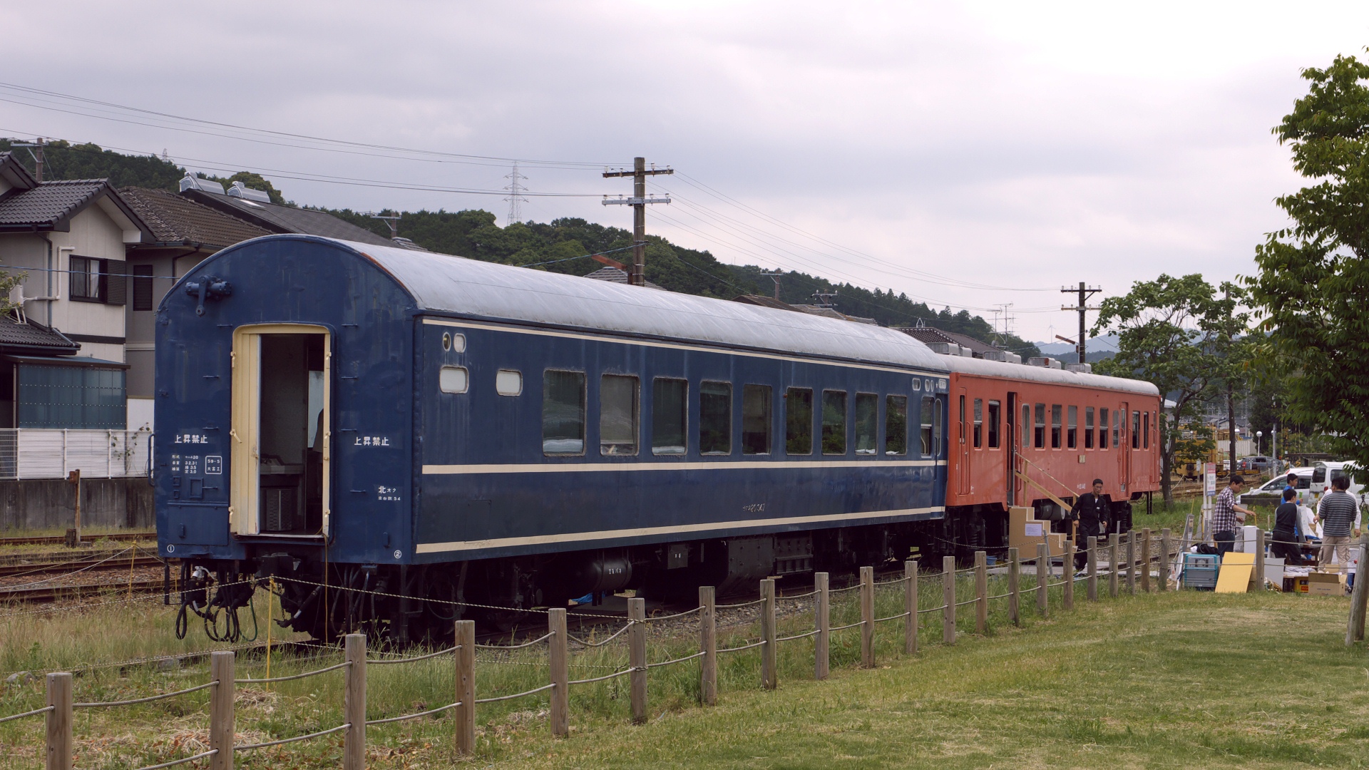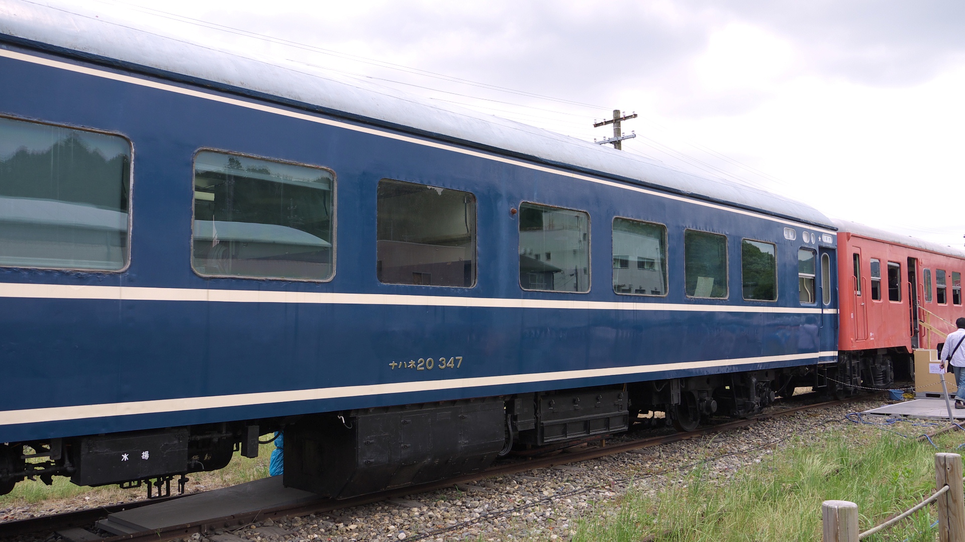 | 天竜二俣駅西側に放置されている 20系寝台車とキハ20 |