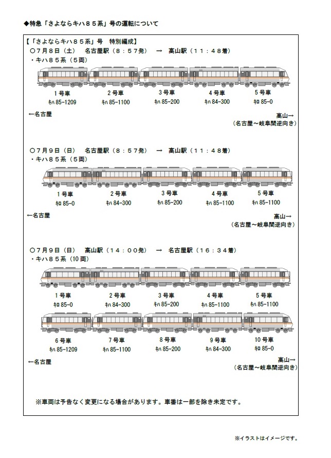 ●しらさぎ ●ワイドビューひだ ●HC85系ひだ ●ワイドビューしなの ●ワイドビュー南紀 ●ワイドビュー伊那路