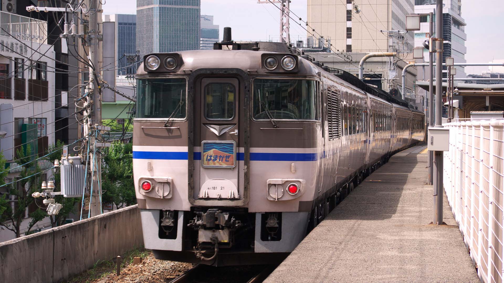 | 特急 はまかぜ (キハ181系) 大阪-香住駅・浜坂駅・鳥取駅間を運行する特急列車。キハ181系を定期運用する唯一の列車だが、 2011年春には新型車両キハ189系の投入が予定されている。 大阪-姫路間は最高速度120Km/hだが、播但線内は95Km/h(一部110Km/h)。 |