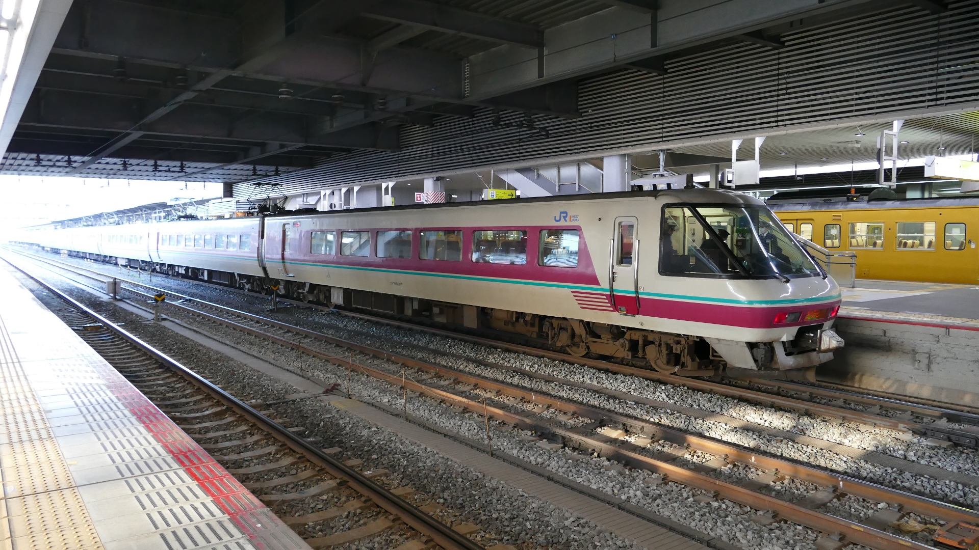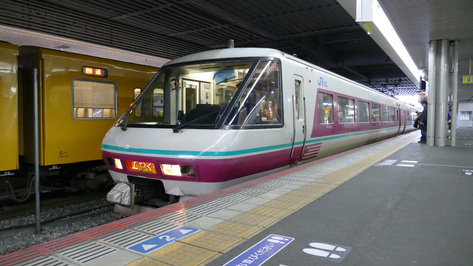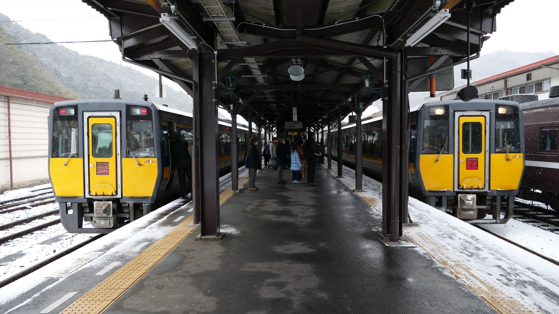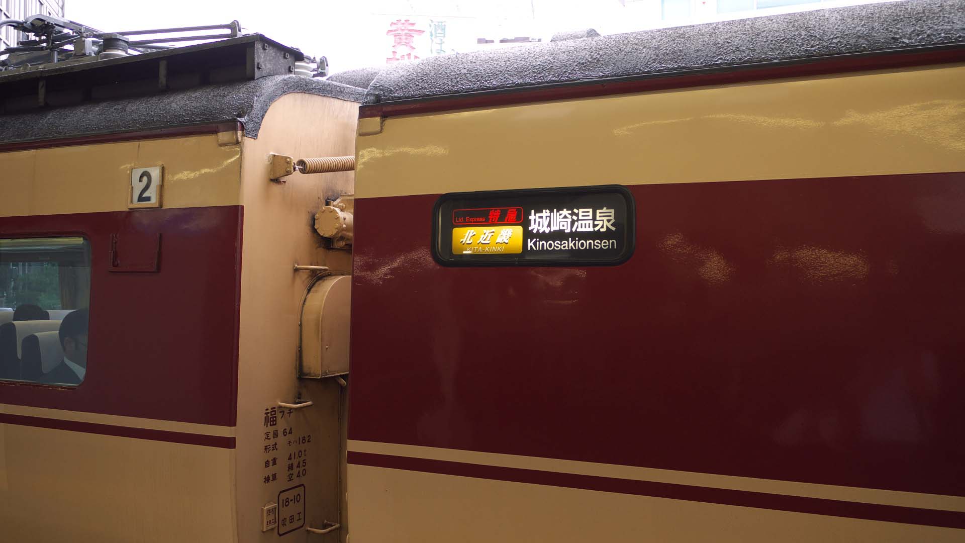 1号車は半室グリーン車クロハ183 | 城崎温泉行きの方向幕 | 4号車は新幹線ホームの下 | ||||