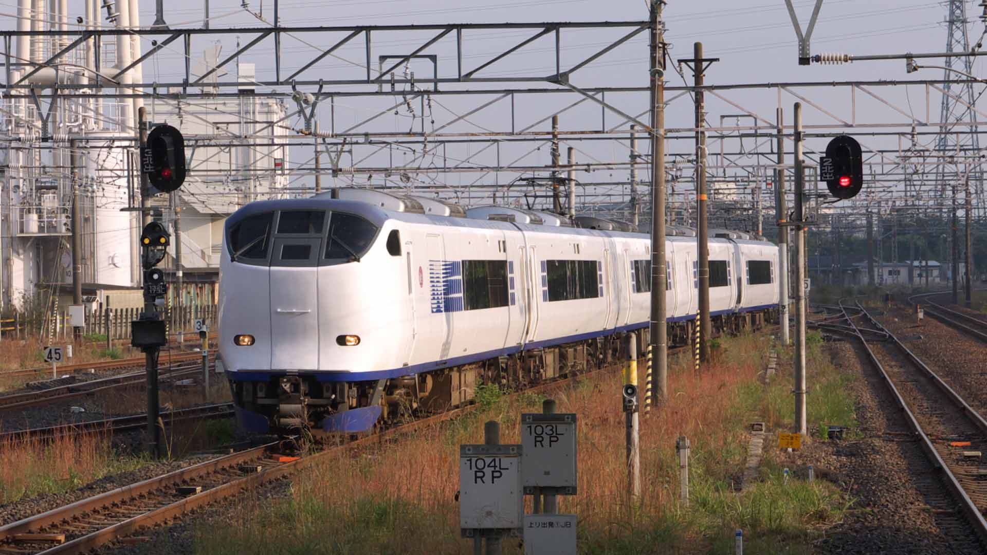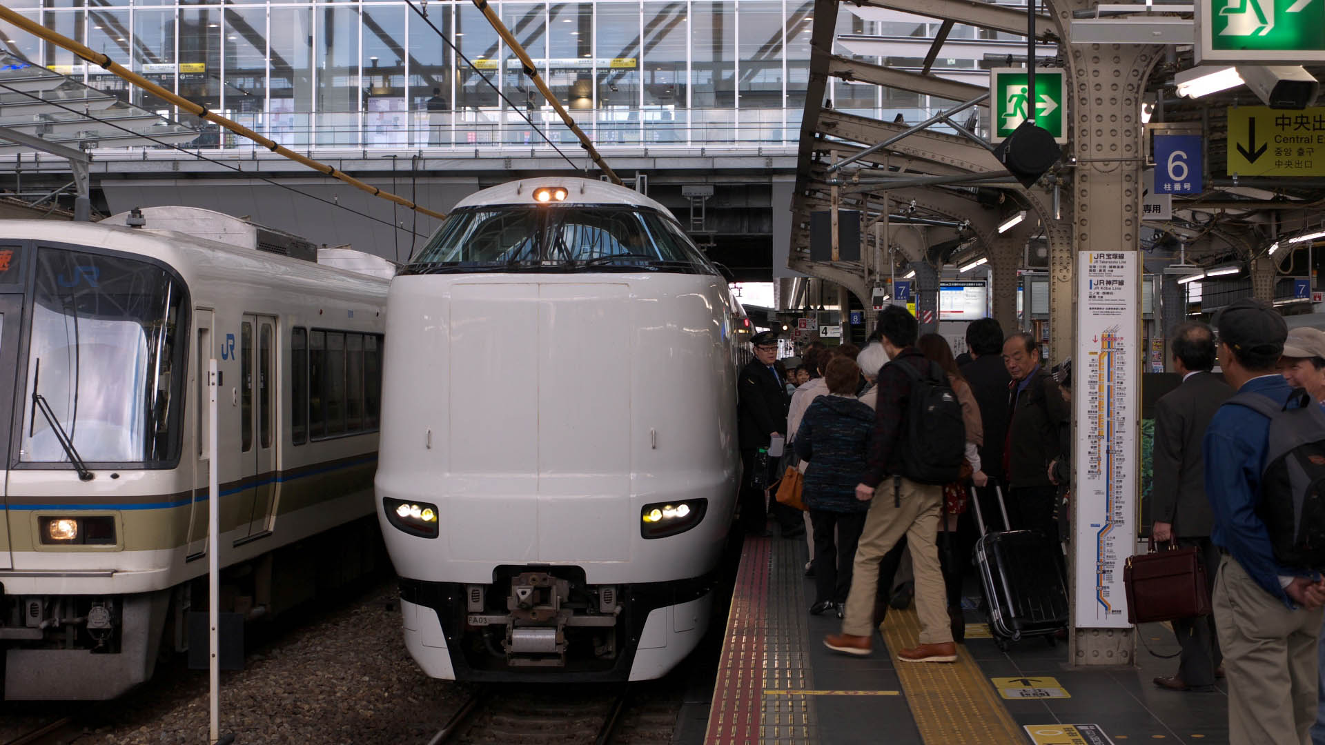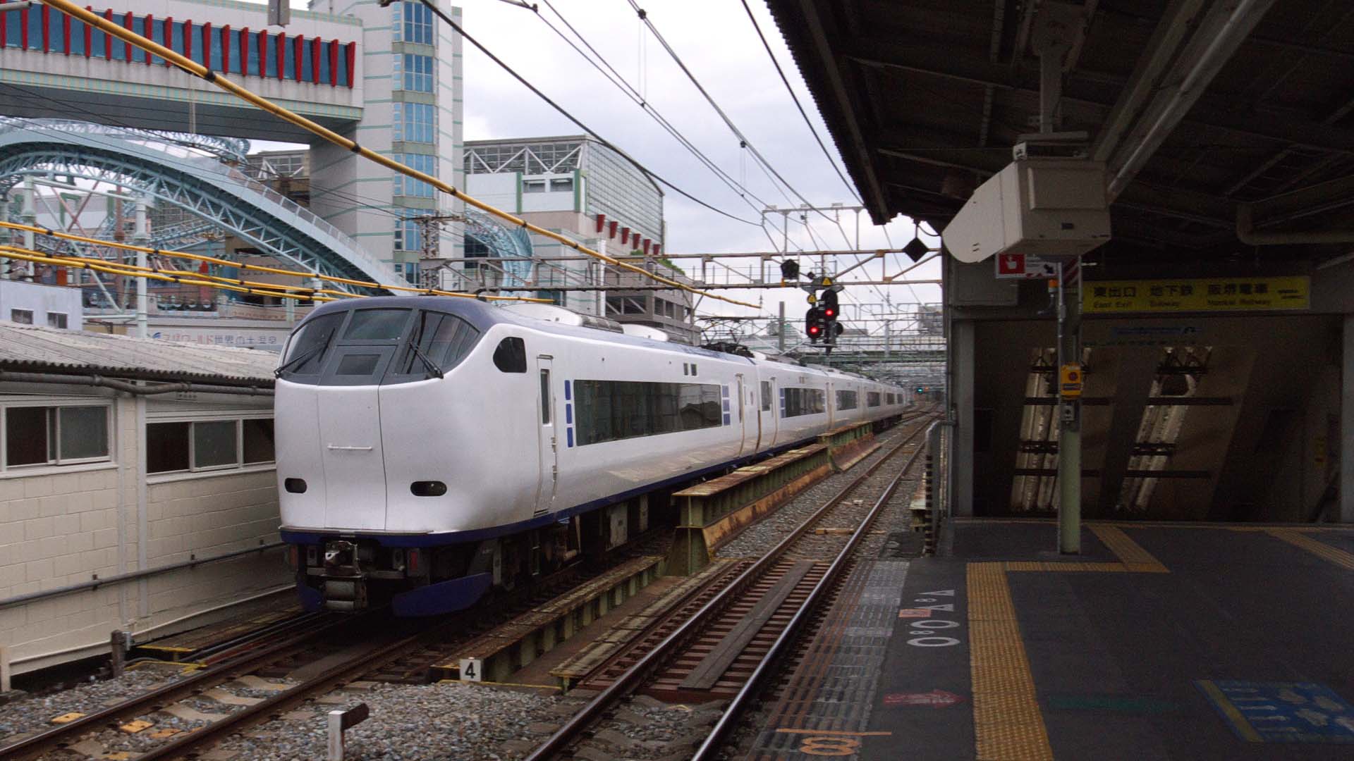 | 特急 はるか (281系) 1994年9月4日に開港した関西国際空港へのアクセス列車の1つとして運転を開始した。米原駅では朝に下り・夜に上りが発着している |