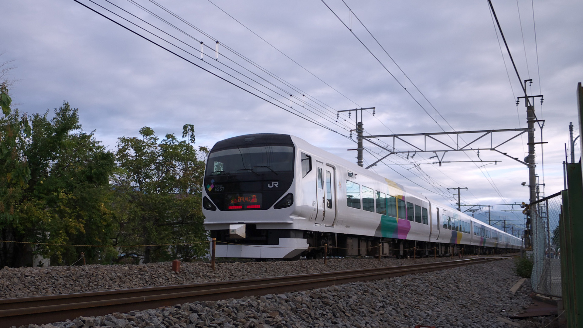 | 中央東線の特急 スーパーあずさ(E351系) 新宿〜松本・信濃大町(白馬・南小谷) 1993年から運用、制御付き自然振り子式を採用した特急で、この車両以降JR東日本ではEという頭文字をつけている。 かいじ(E257系) 新宿〜甲府・竜王 2001年から運用 |
