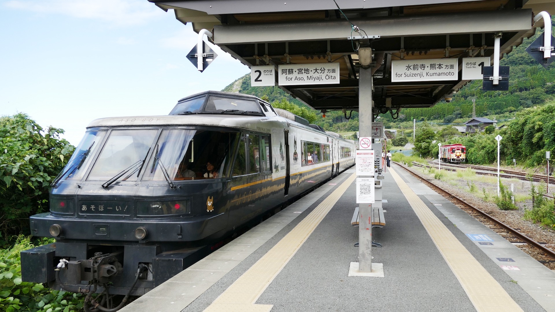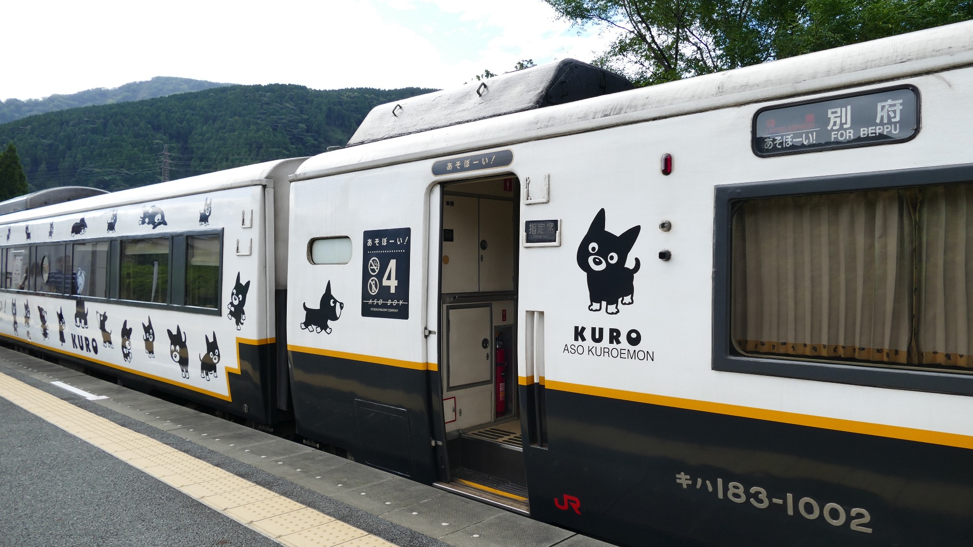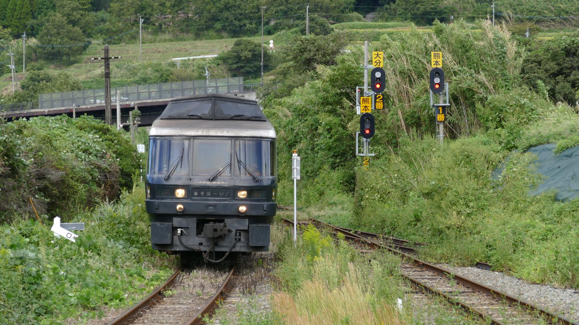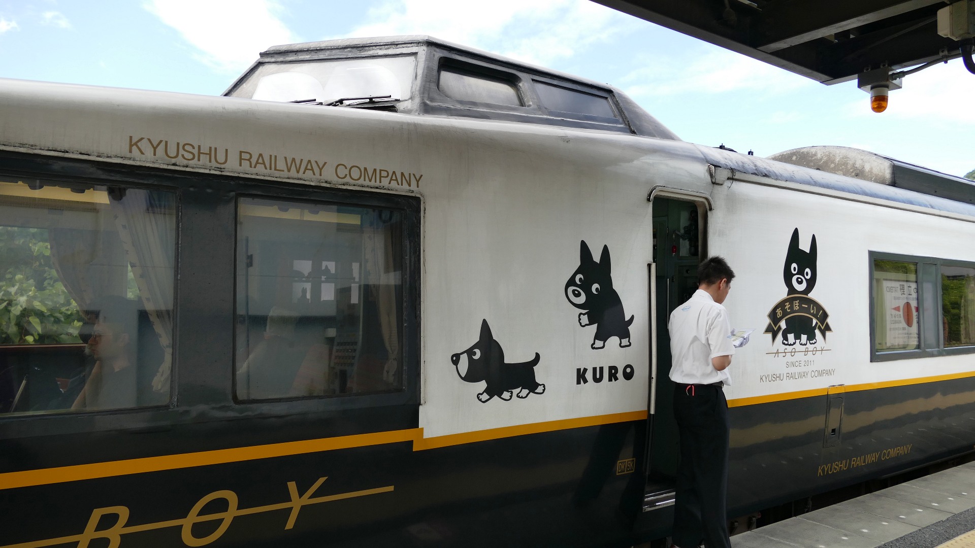 | 観光特急 あそぼーい! (キハ183系) 土休日と長期休暇中に熊本〜豊肥本線・宮地を1日2往復している。以前は「オランダ村特急」や「ゆふいんの森U世」に使われていたが、 「あそぼーい!」転用にあたり、水戸岡鋭治による内装により2011(平成23)年に運用開始となった。 |