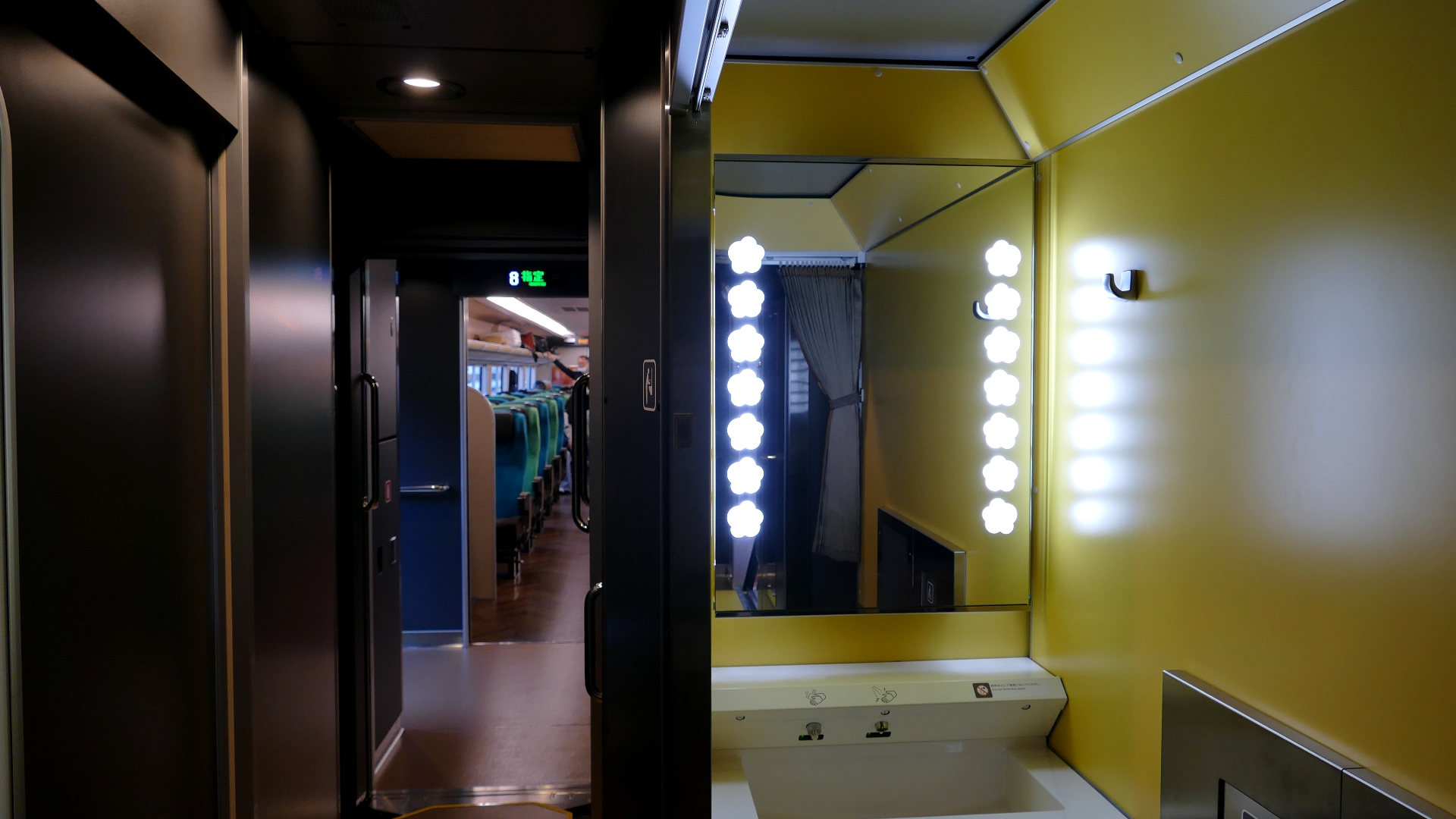 洗面所のミラー照明がイイ。普通車・セミコンパートメント・グリーン車 | 帰りも新型やくも 根雨駅で交換待ち 米子14:37発のやくも20号 岡山16:47 |