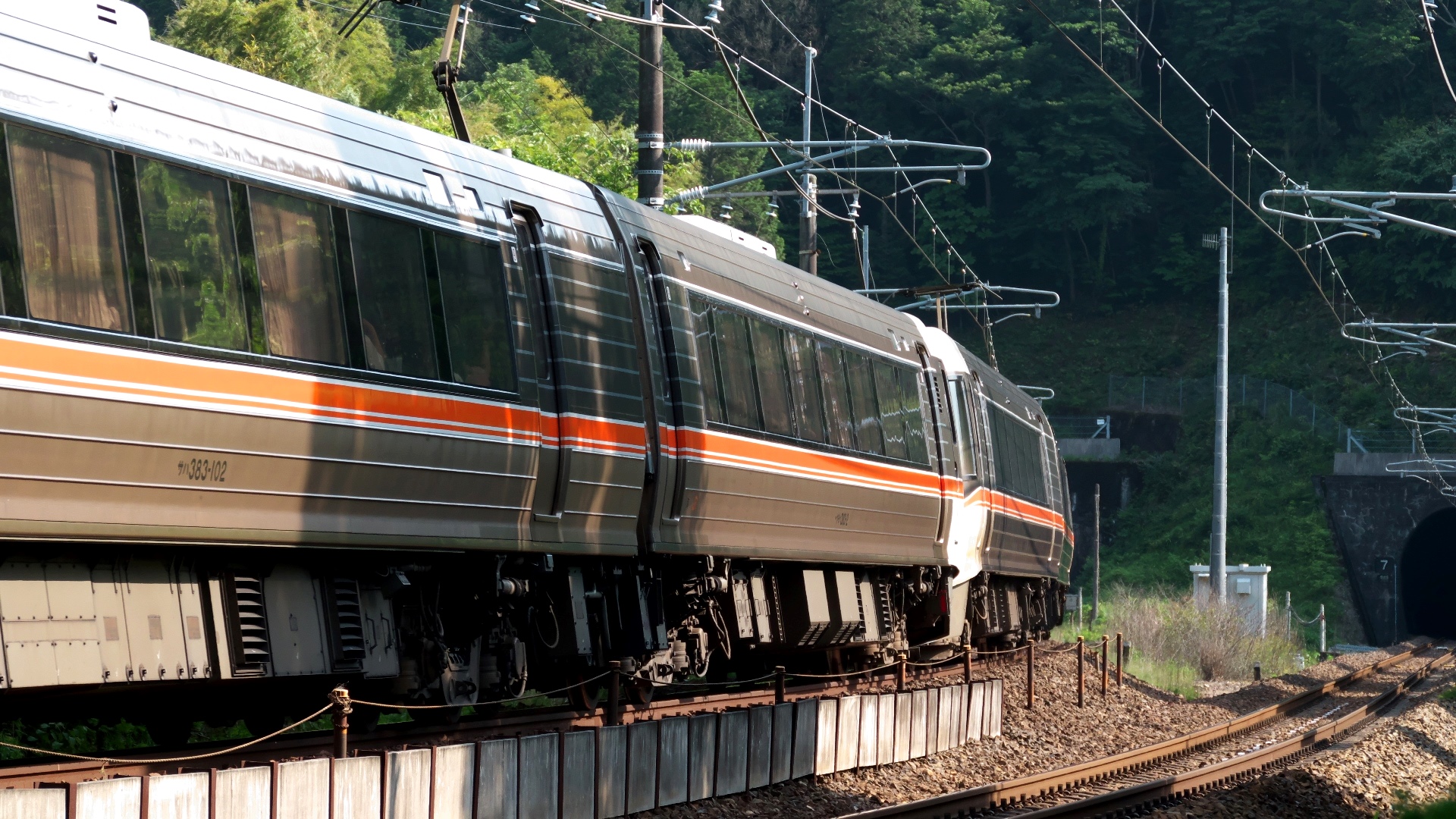 | L特急 ワイドビューしなの (383系) 1996年12月定期運用開始のJR東海所有の制御付自然振子方式を採用した直流用特急型電車。最高速度は130Km/h 単線区間の行き違いや、塩尻駅での中央東線からの列車の接続待ちなどの影響により、数分の遅れが発生することが日常化している。 |