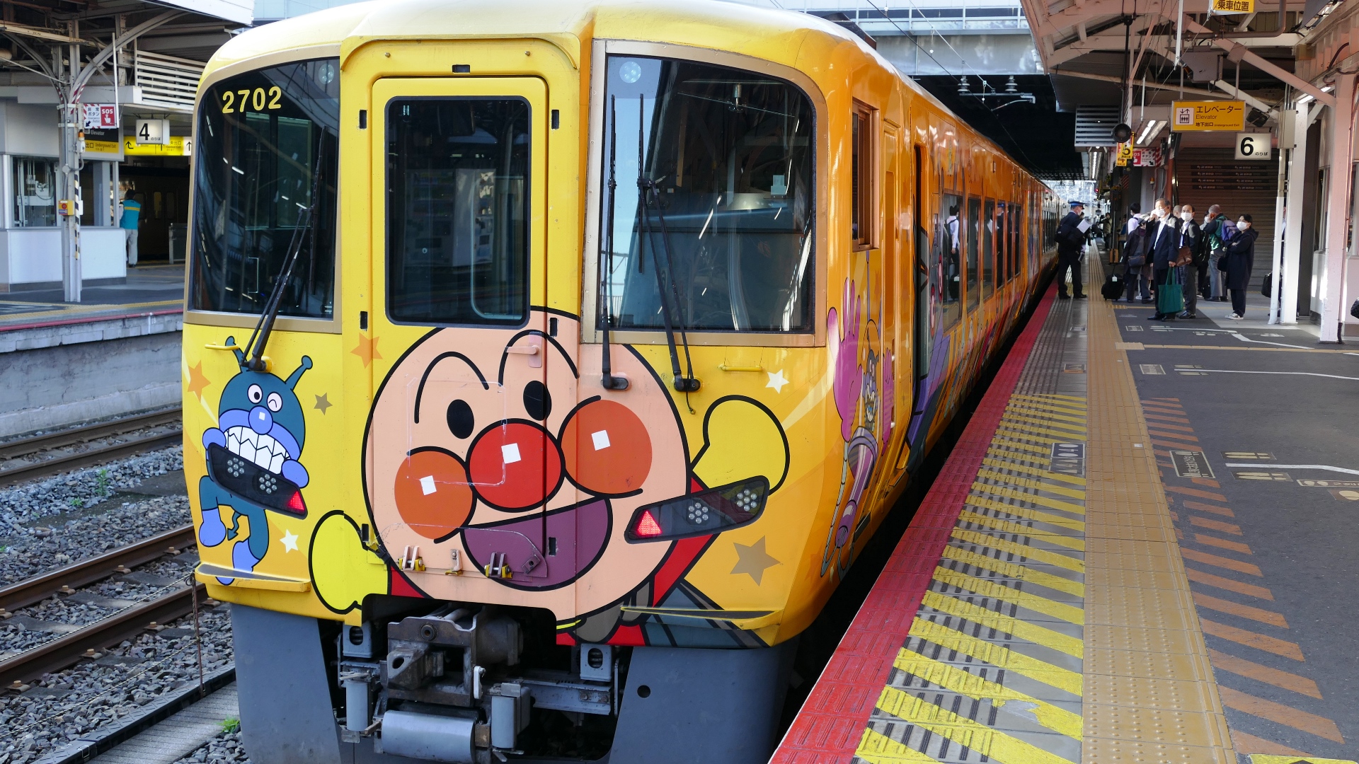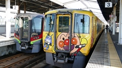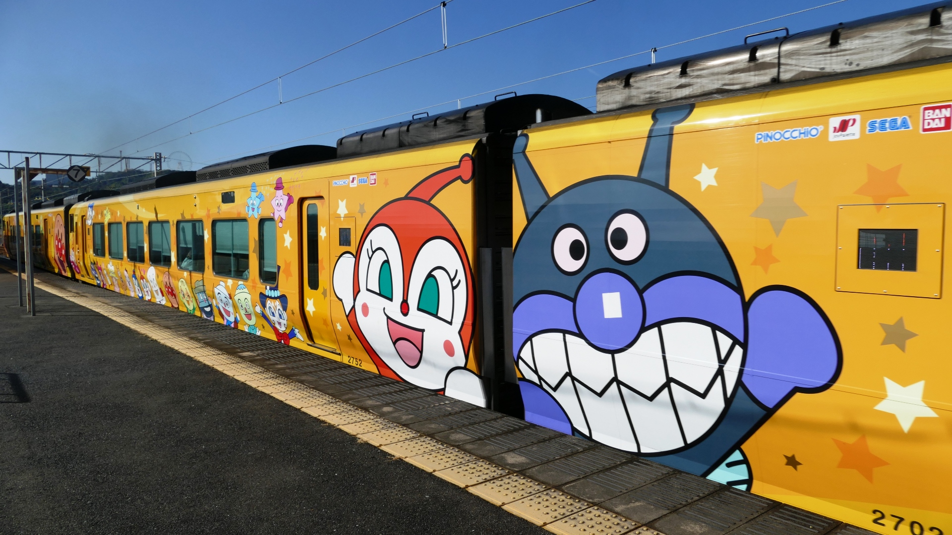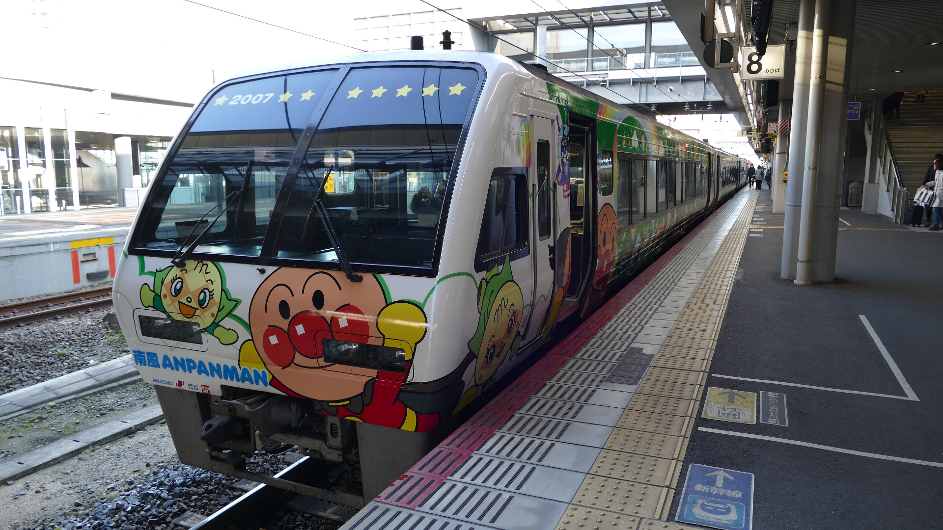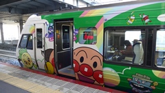 | 南風3号 岡山851-中村1324 岡山駅 2016.1.1 高知県出身の「やなせたかし」氏の「アンパンマンラッピング」 | 最後尾は貫通型 | ||||||