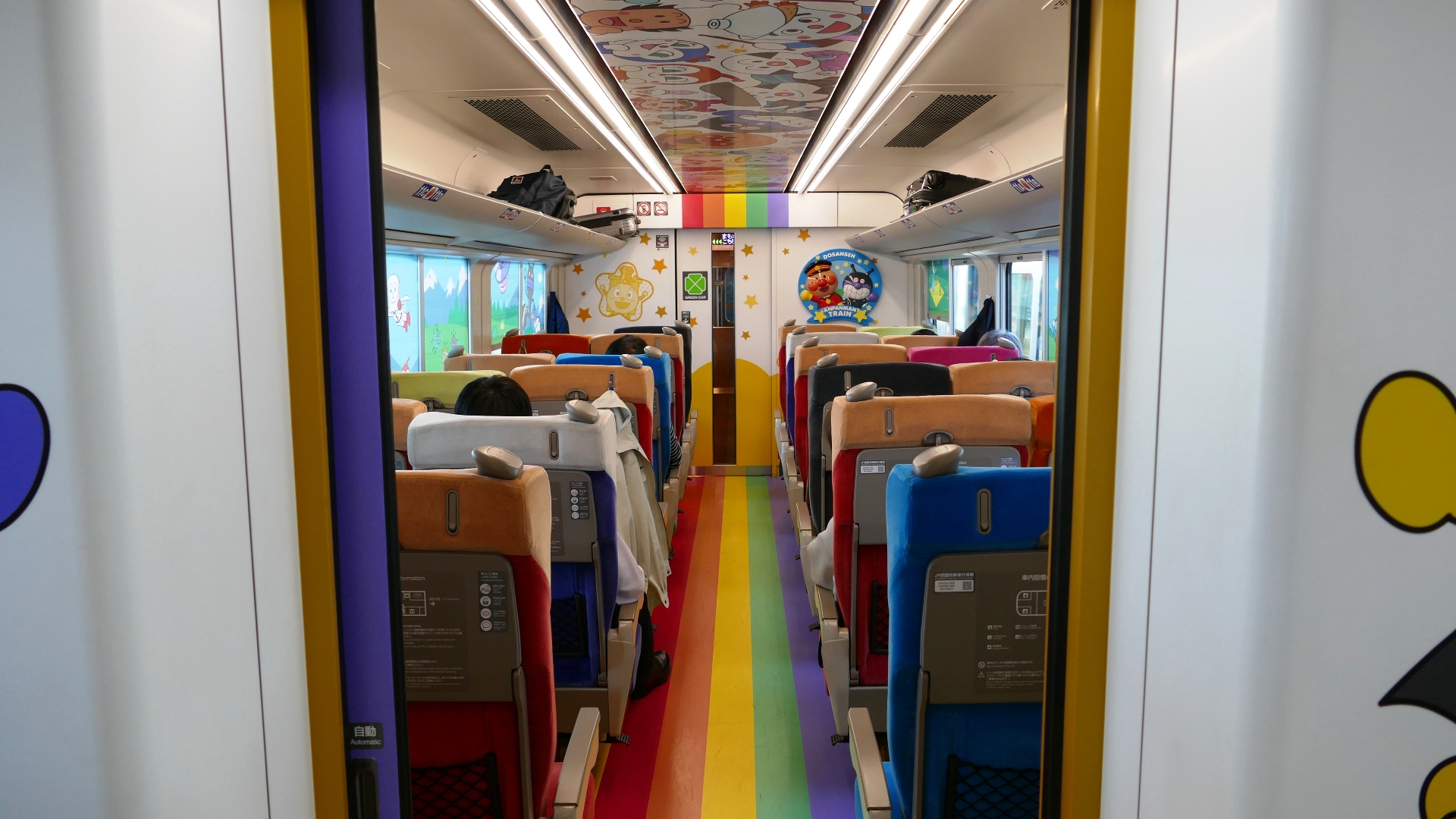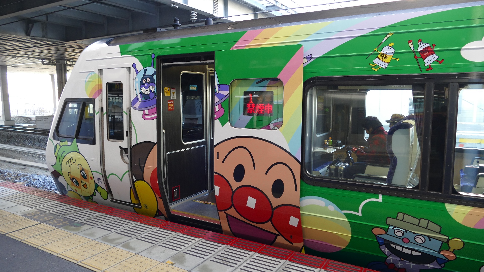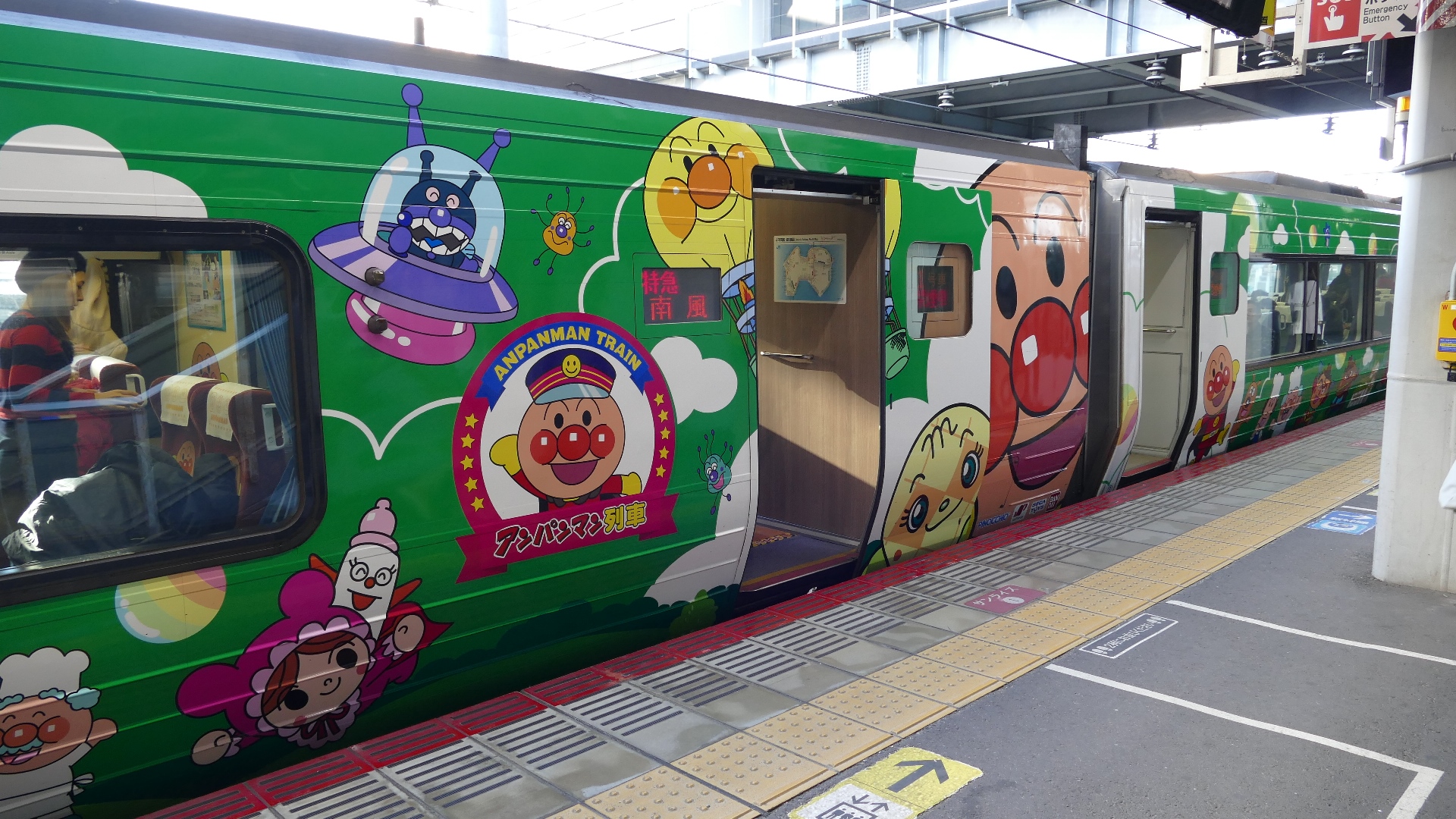 | 岡山8:52発の南風3号。アンパンマン指定席の車内は至る所アンパンマン。半室グリーン車は控えめのよう。 | |||||||