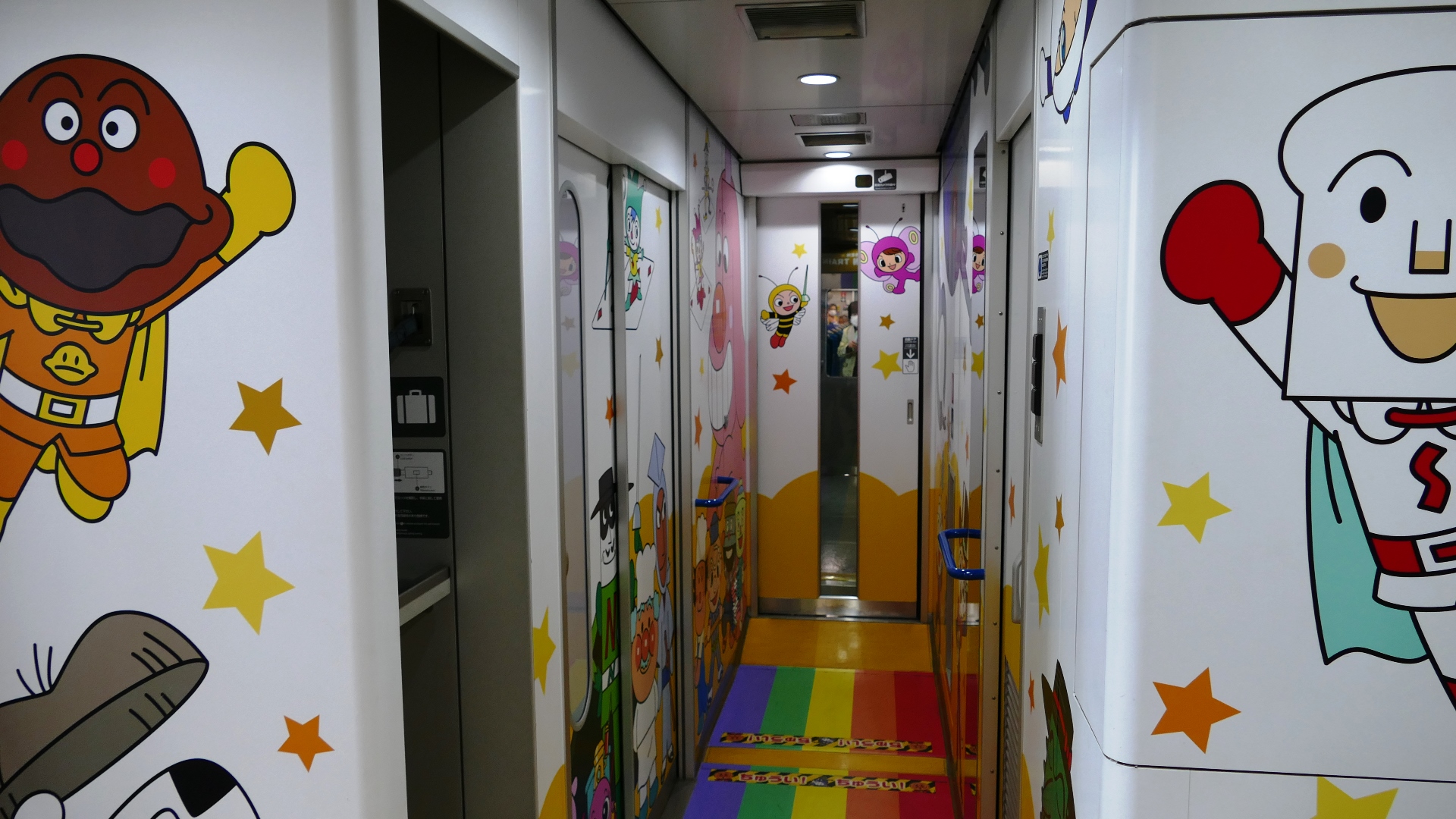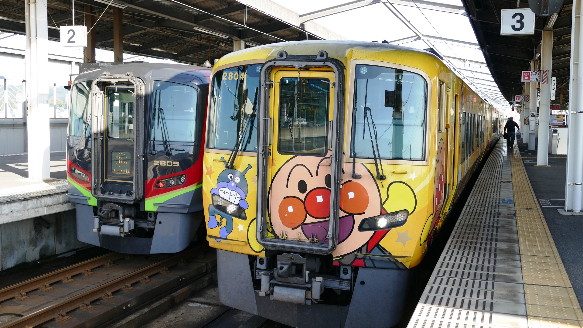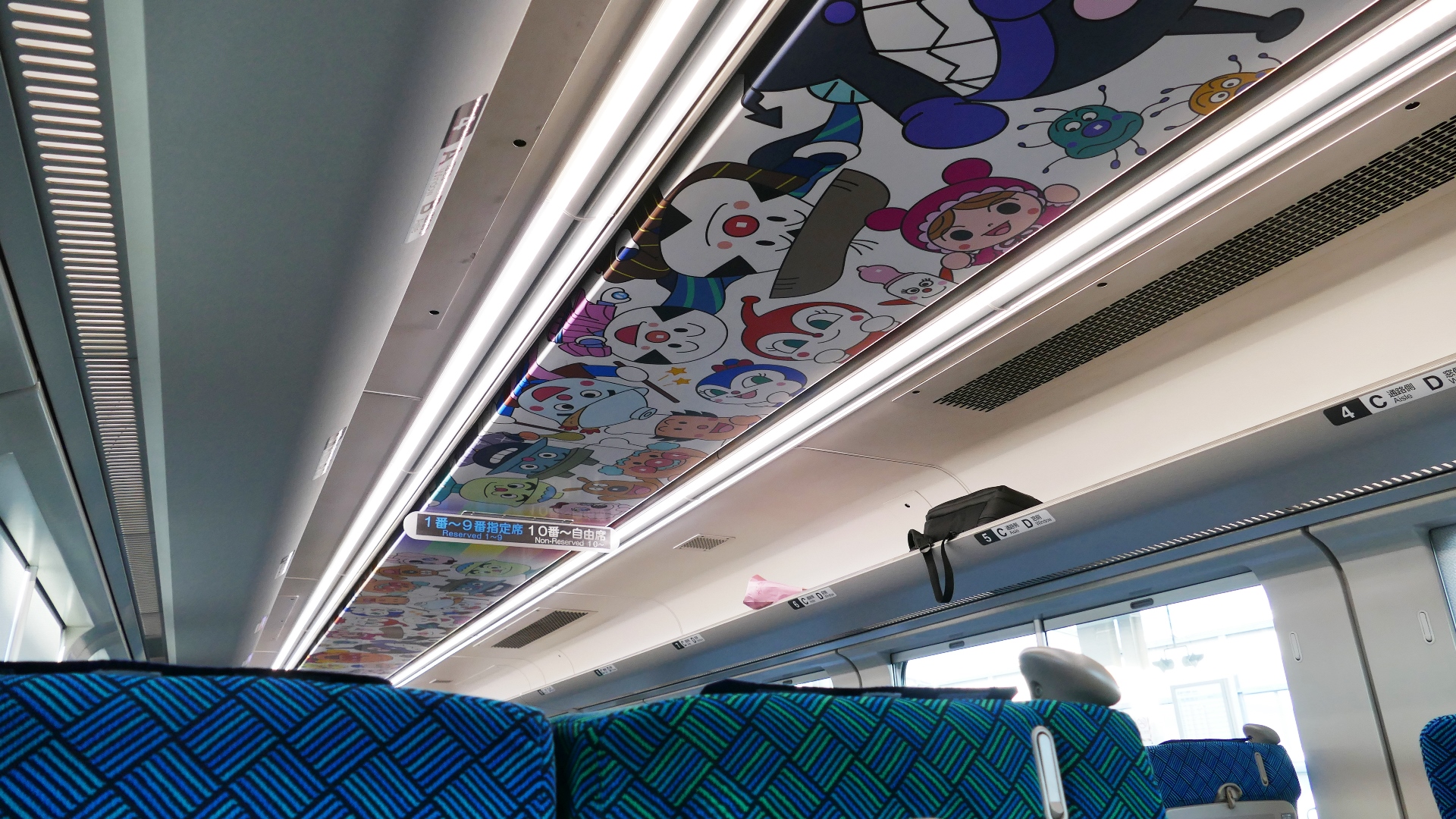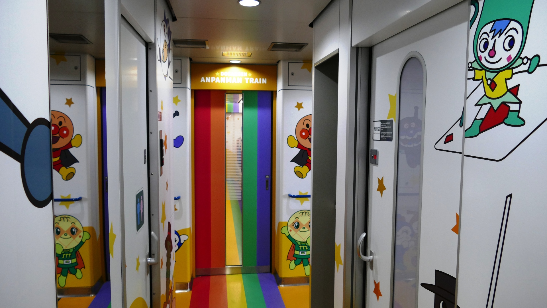 | 岡山8:52発の南風3号。アンパンマン指定席の車内は至る所アンパンマン。半室グリーン車は控えめのよう。 | |||||||