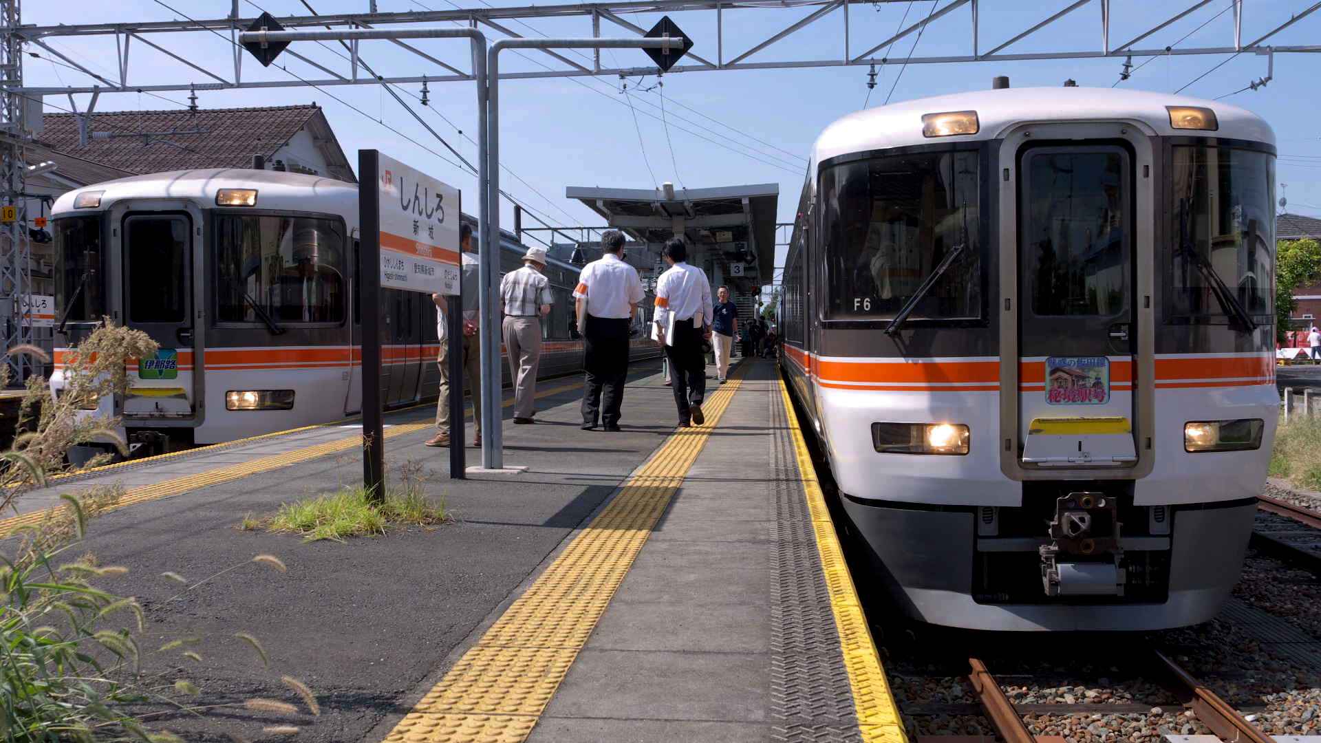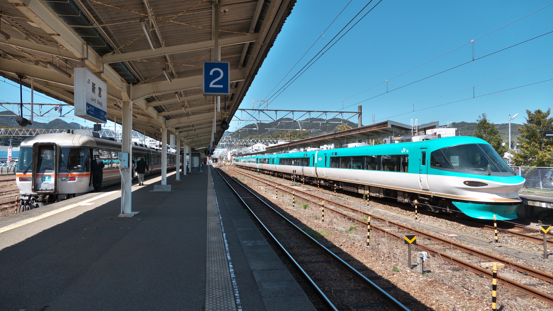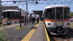 | 新城駅到着 | 新城駅では22分停車 | 新城駅で、伊那路1号が追い越す | 新城駅 | ||||