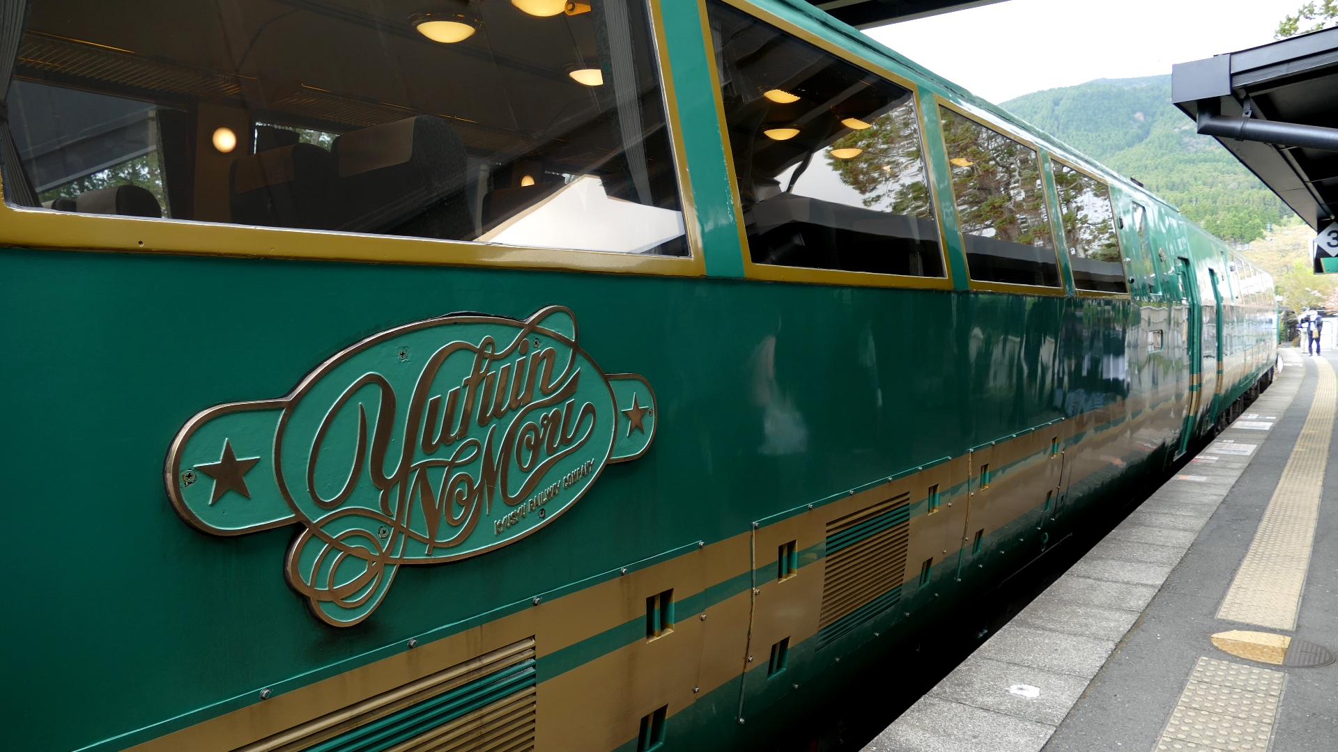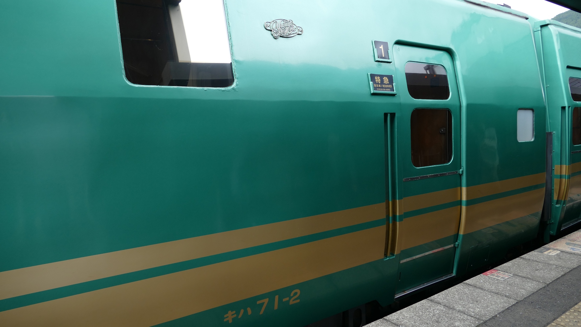 | ゆふいんの森2号 由布院駅 本来ならば5両編成のキハ72系(V世)の運用なのだが、車両検査の兼ね合いなのか、キハ71系(T世)で運用された。 2022.4.12 | 走行中の車内(T世) ハイデッカー構造で眺望が良い。 | ||||||