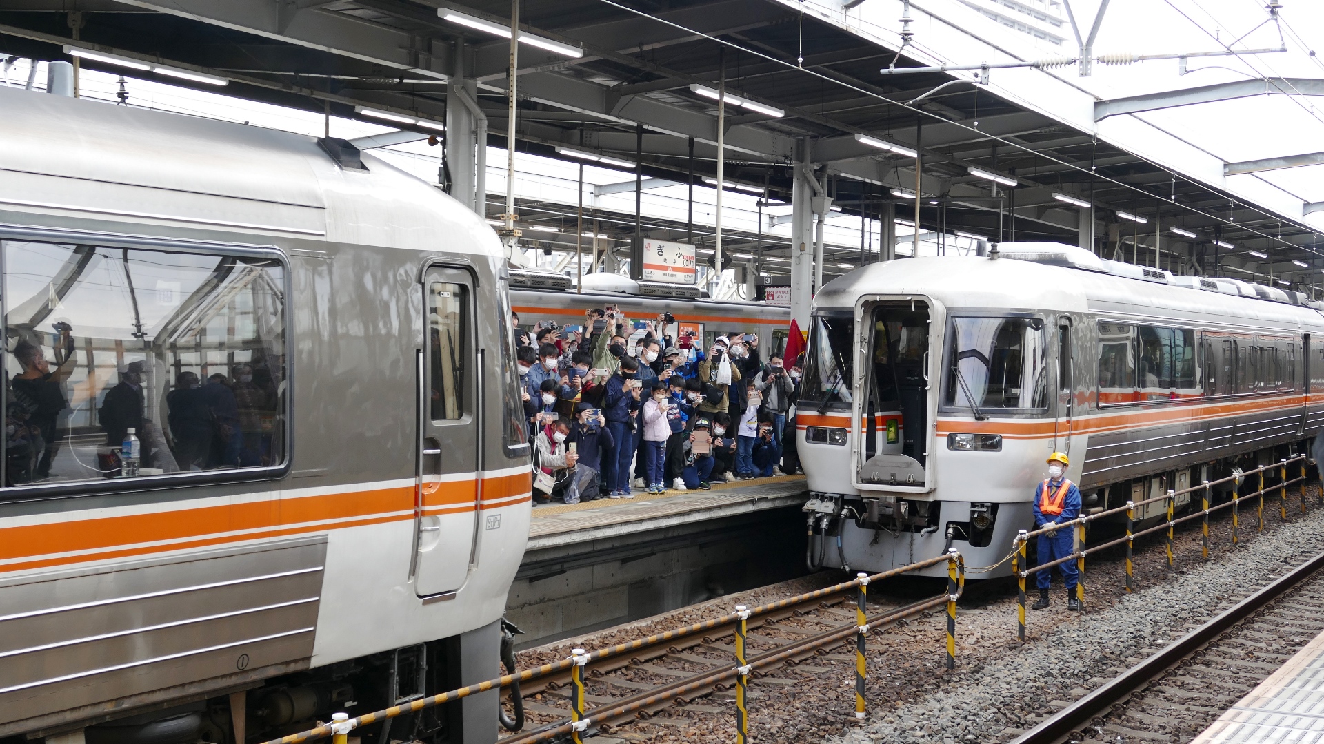 | まもなく見納め「キハ85」大阪「ひだ」と連結シーン。 大阪発4両と名古屋発6両の堂々10両で岐阜駅を出発。 2023.3.12 |