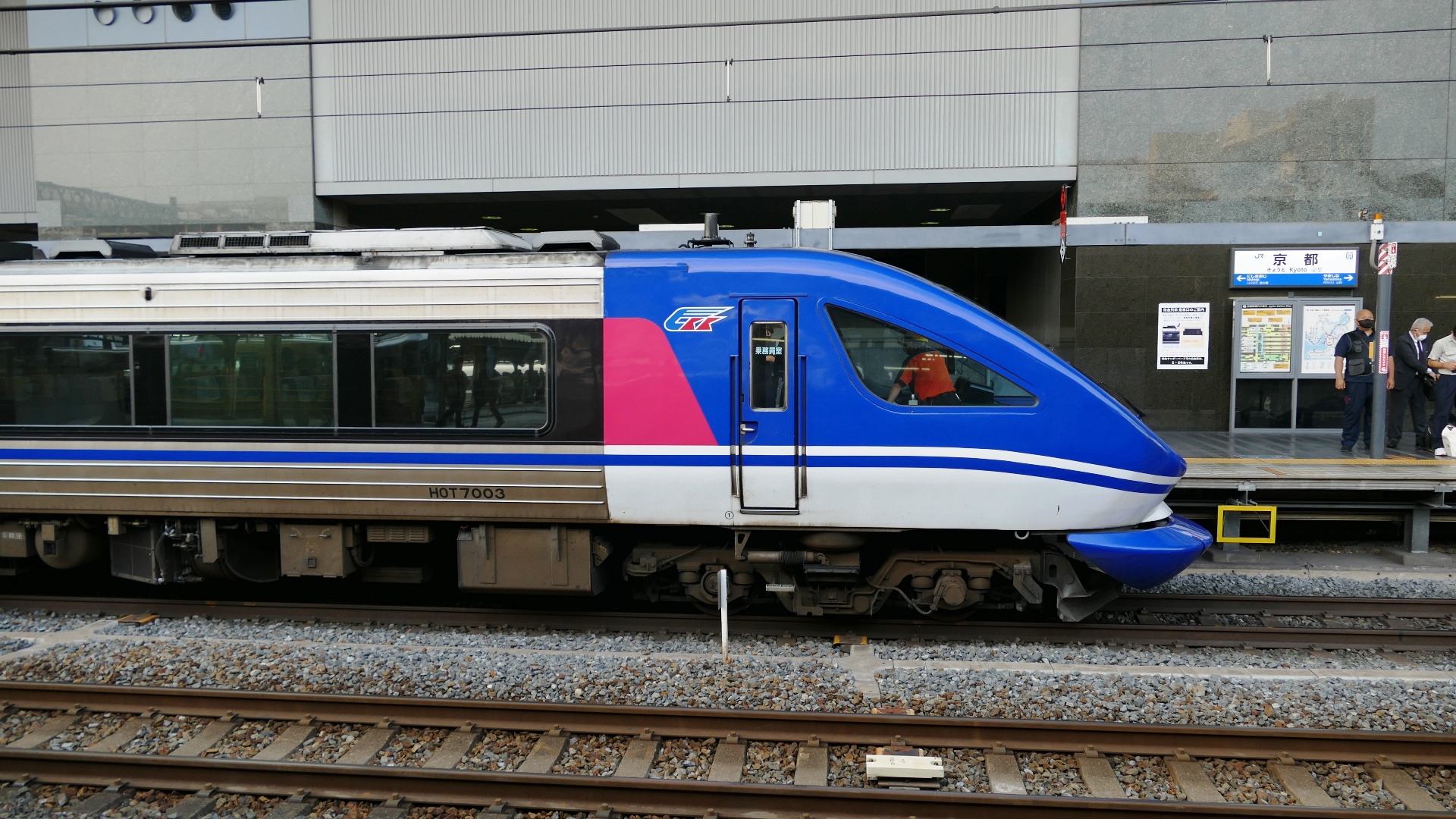 | 特急 スーパーはくと (HOT7000系) 京都-鳥取・倉吉駅間を、東海道・山陽・智頭急行・因美線・山陰線経由で運行する、 「はくと」は「因幡の白兎」に由来。1994年12月より運用開始。HOTは兵庫・岡山・鳥取のローマ字表記の頭文字に由来している。 営業最高速度130Km/hだが、将来の160Km/h運転に対応した設計となっている。智頭急行所属の振り子つき特急列車。 |