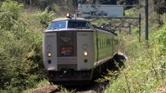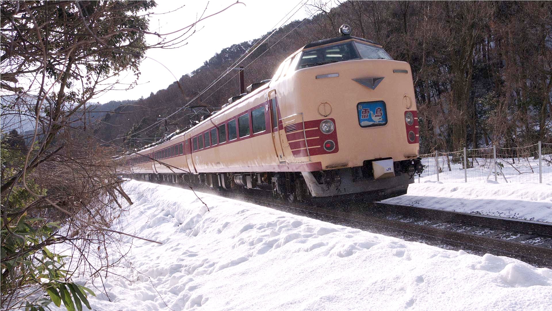 | 特急 やくも (381系) 381系は1972(昭和47)年デビューした初代振り子式特急型電車だが、「くろしお」「こうのとり」「きのさき」「はしだて」と活躍していたが2015年10月にラストランを終え、現在はこの「やくも」だけとなる。 「やくも」は伯備線経由で岡山-出雲市を約3時間で結んでいる。 |